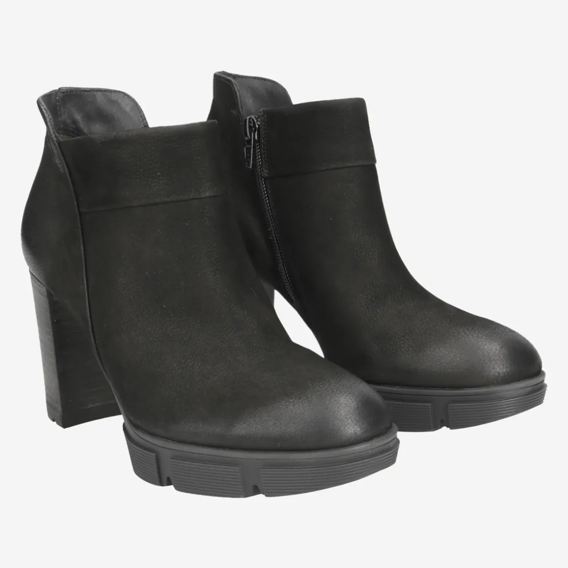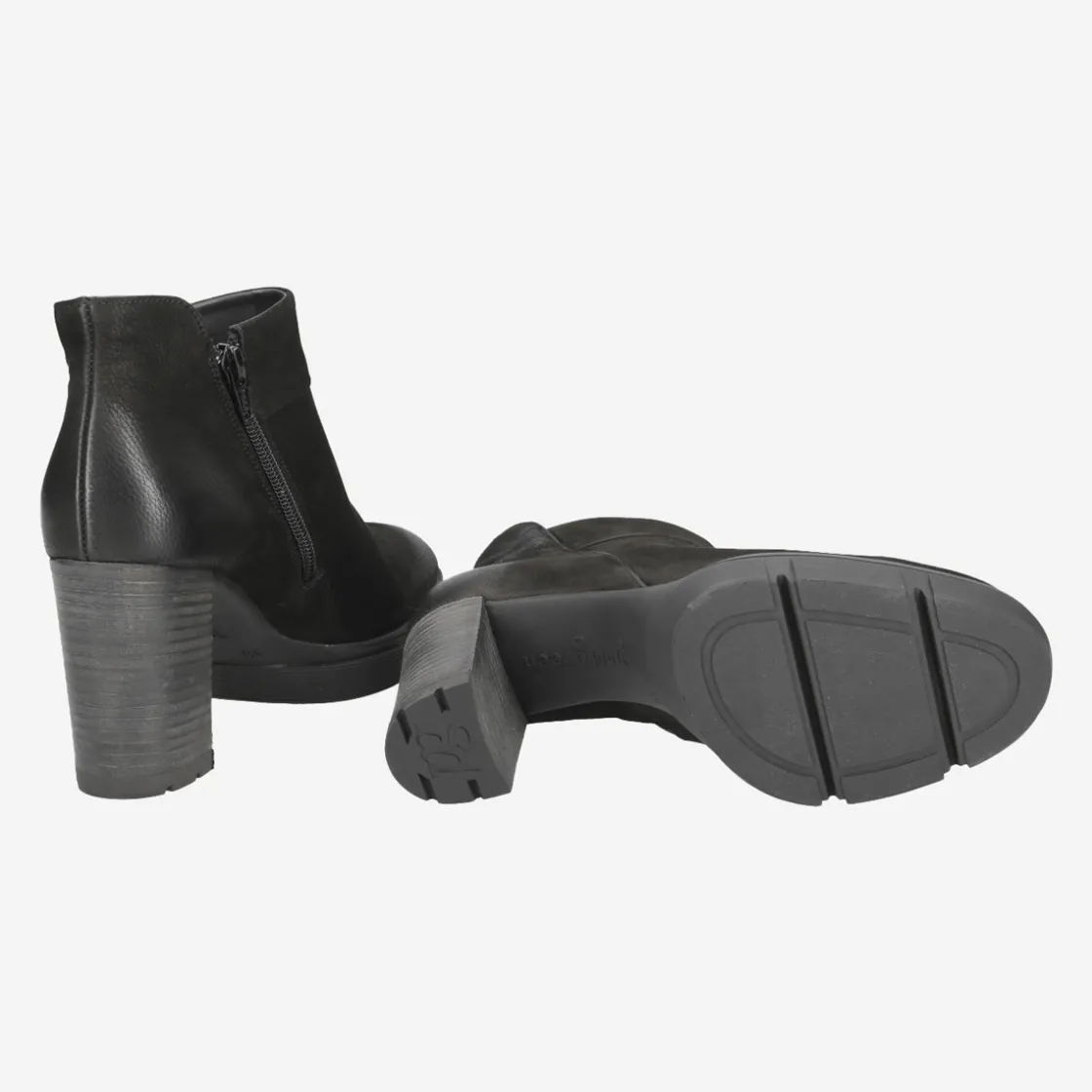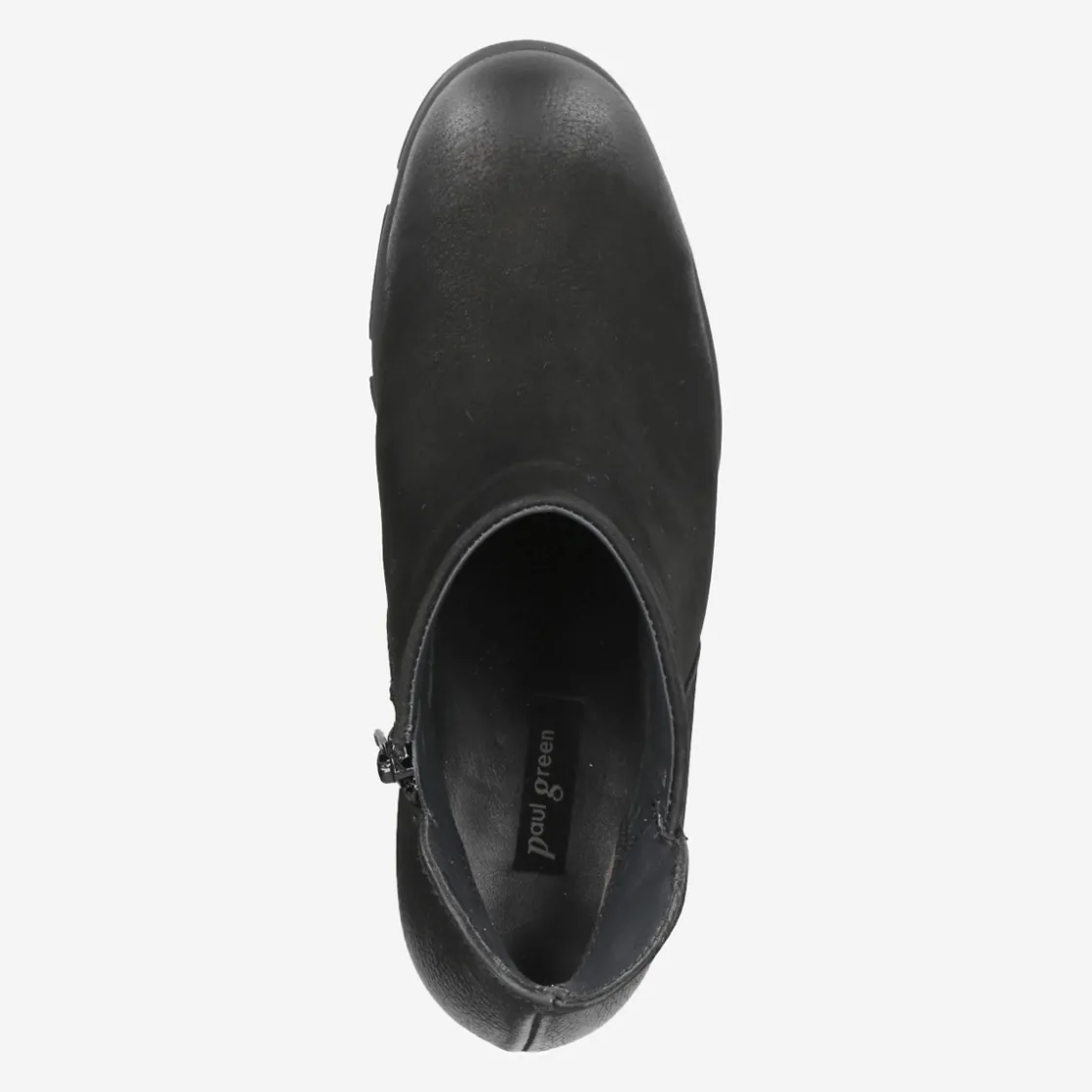 This fashionable ankle boot from Paul Green simply goes with any outfit. The soft nubuck leather in black is particularly easy to combine. Thanks to the zipper on the inside, a quick on and off is guaranteed. The flexible platform sole with blocky heel visually stretches the leg and ensures a pleasant appearance. Definitely a must-have in every shoe closet! Paul Green stands for women’s shoes of the highest quality, made with craftsmanship and passion. Each of our shoes is made by qualified master shoemakers in up to 160 steps. The result is quality that you can see and feel.