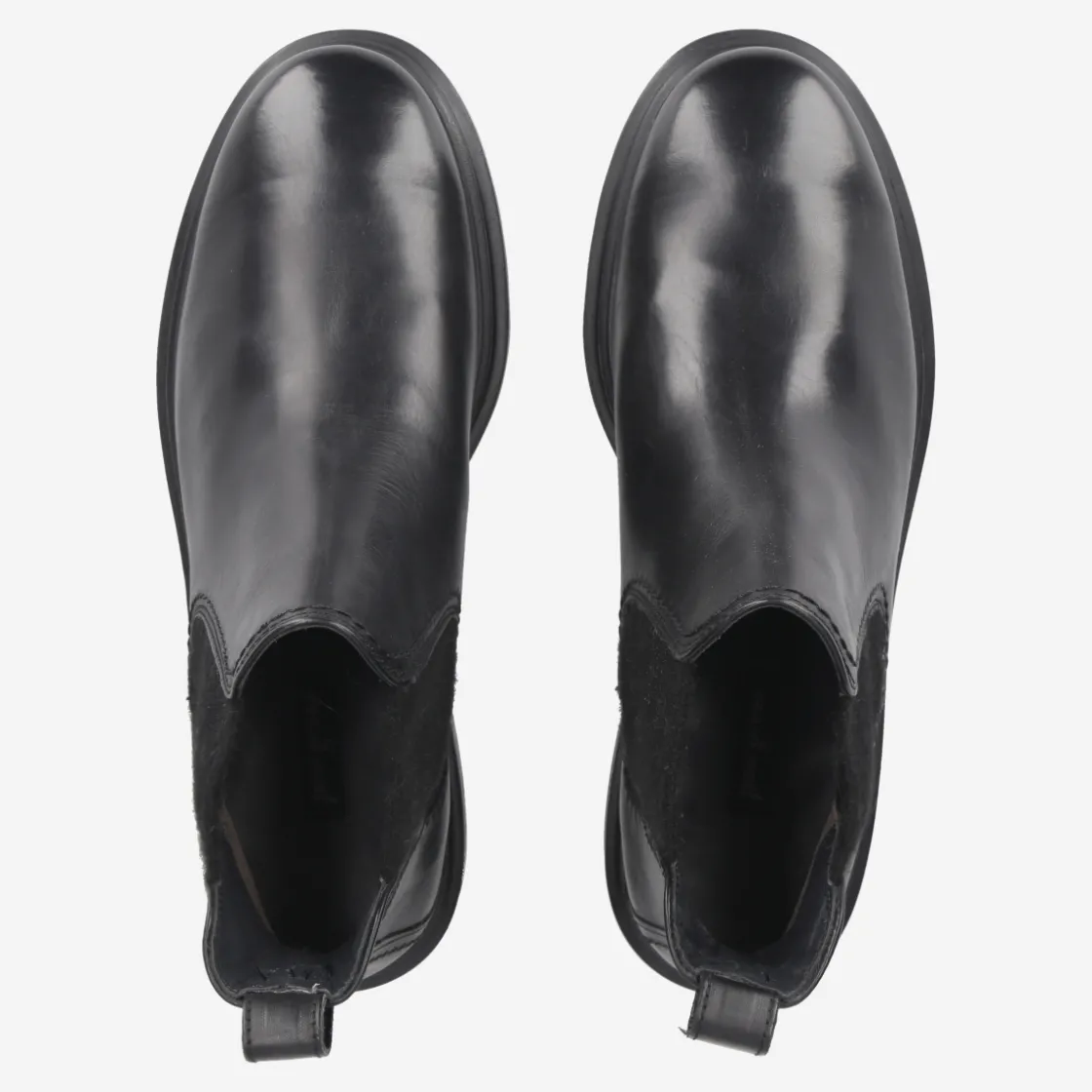 These Chelsea ankle boots from Paul Green are timeless classics for countless stylings. The simple design with noble processing of black smooth leather makes the model with the elastic inserts on the side a timeless companion. Equipped with leather lining and flexible outsole, they wear comfortably. A shoe that stylishly complements the most diverse looks! Paul Green shoes have a DNA of elegance and sportiness. This DNA is in every single shoe and in the entire range.