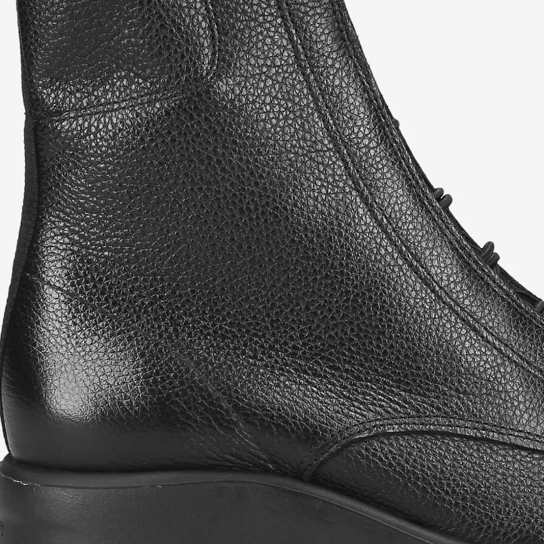 - Made in Europe PFI Eco-Label LWG – Leather Working Group certified, zipper, block heel, platform sole, entry loop, embossed logo, leather application on zipper, double elastic lacing for flexible fit