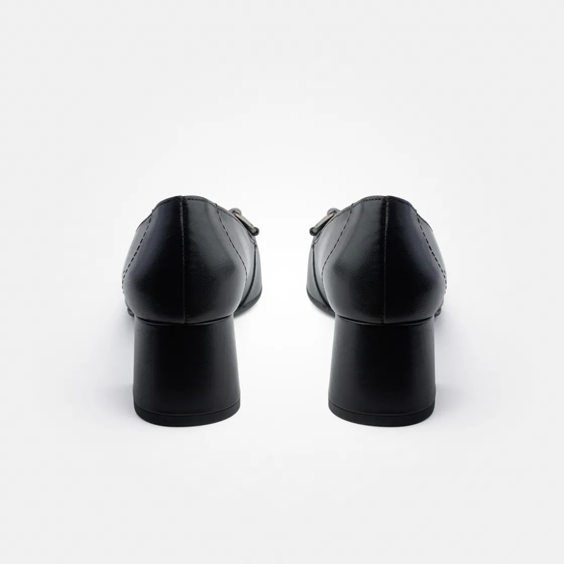 - Block heel, loafer appliqué, horsebit appliqué, breathable