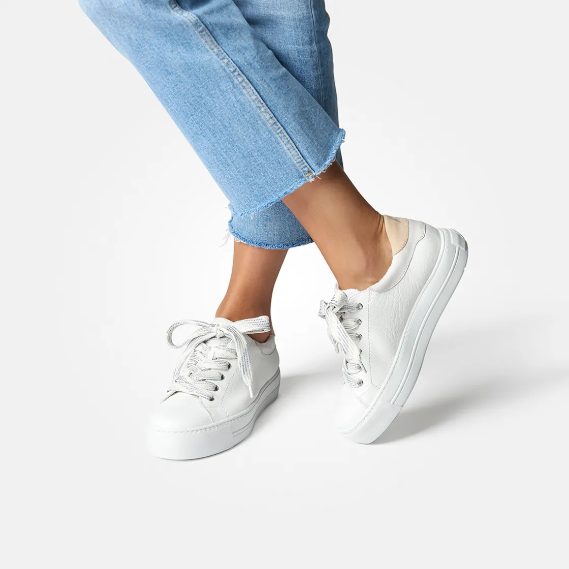 These SUPER SOFT Pauls from Paul Green will add a new touch to your casual outfits. The look is rounded off by the supple smooth leather in white and the super soft leather lining with TENCEL™ fibers, which ensures perfect comfort. The strikingly beautiful laces add a fashionable flair. The hard-wearing outsole lets you stride through the day with ease and cuts a great figure. Get this legendary upgrade for jeans or airy dresses! Each Paul Green shoe is made by hand in up to 160 steps and then checked. This ensures that they meet the high standards of fit and quality.