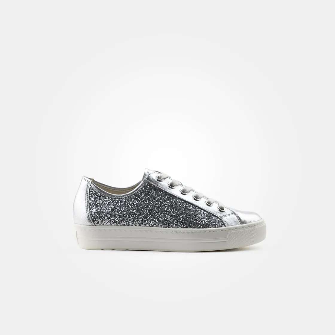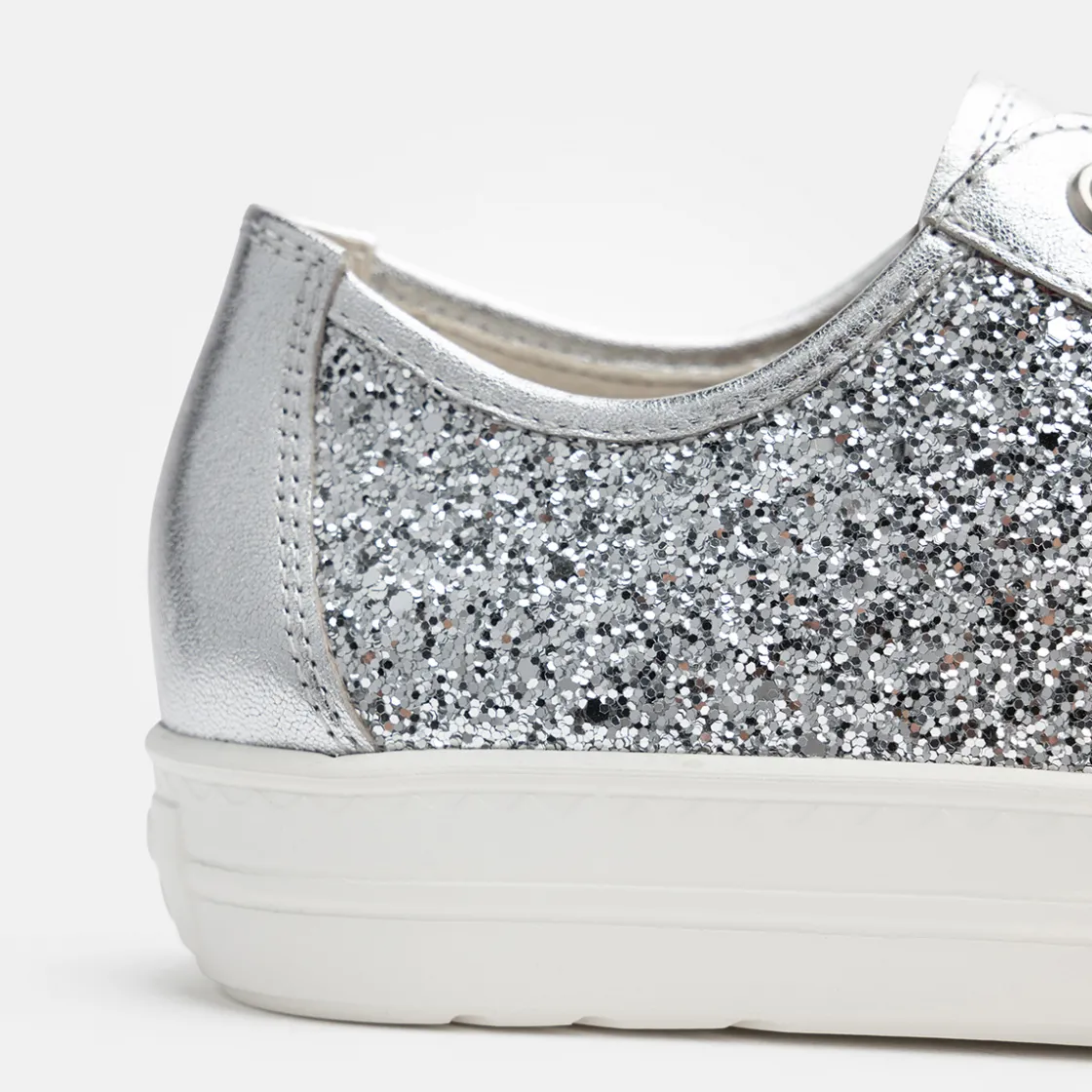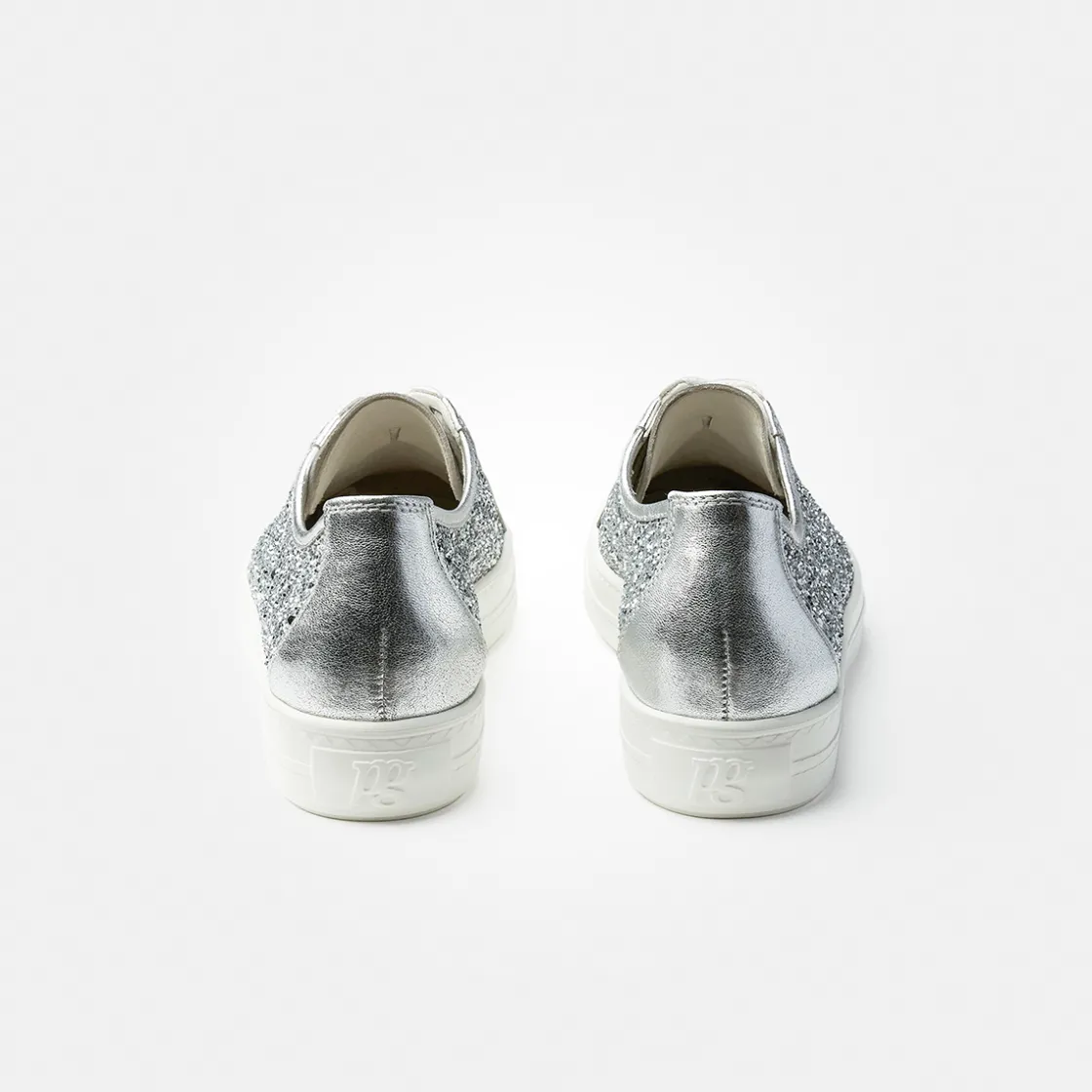 Give your outfit creations a stand-out finish with these SUPER SOFT Pauls from Paul Green! The extravagant mix of high-quality metallic leather with glitter elements in silver is complemented by sporty laces. The super soft leather lining makes them extremely comfortable to wear. The lightweight, durable outsole provides an extra dose of cosiness. This pair is the perfect companion for a city safari! Paul Green stands for women’s shoes of the highest quality, made with craftsmanship and passion. Each of our shoes is made by qualified master shoemakers in up to 160 steps. The result is quality that you can see and feel.