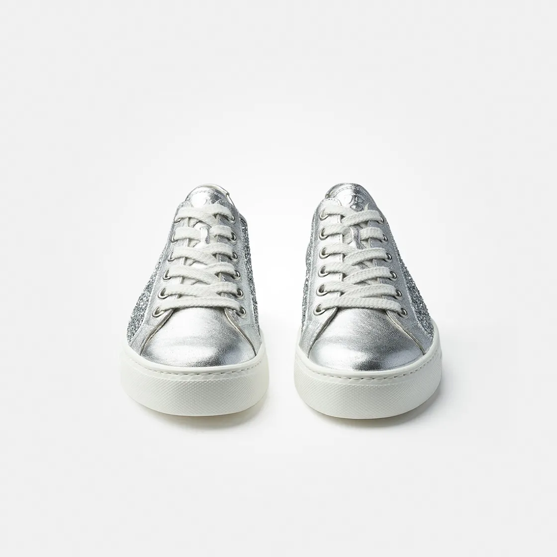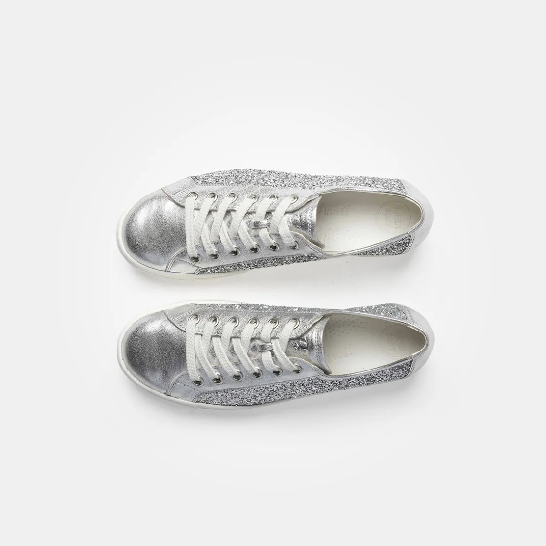 - Embossed logo, breathable, all-over glitter applications in silver metallic, SuperSoft, supple leather, soft heel cap, light and flexible outsole, soft footbed