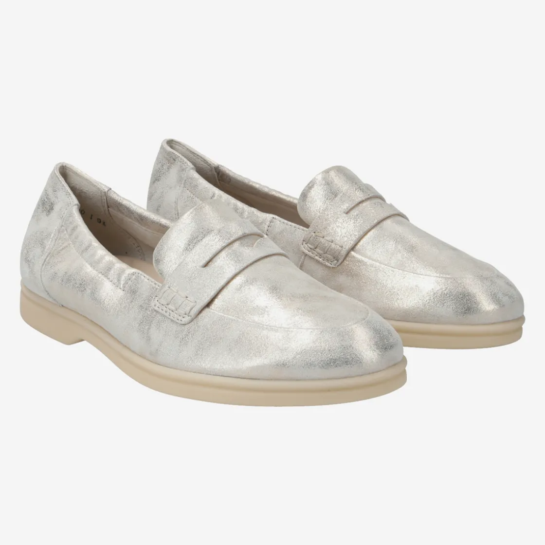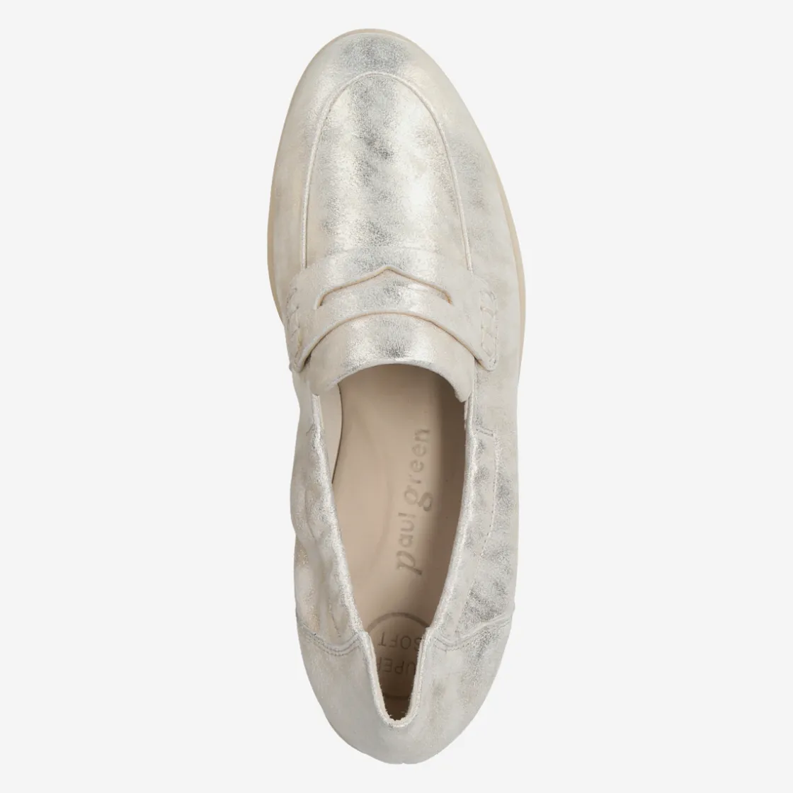 These SUPER SOFT loafers from Paul Green have a classic, sporty look and are comfortable to wear. The popular trendsetters made of silver-colored metallic leather are extremely light and gently caress the foot. The flexible outsole makes walking a pure pleasure. A model that delights with comfort and lightness! Paul Green makes shoes with great passion and mastery, which is expressed in perfection, quality, style and fit. The result: a unique, uplifting wearing experience! The Paul Green effect.