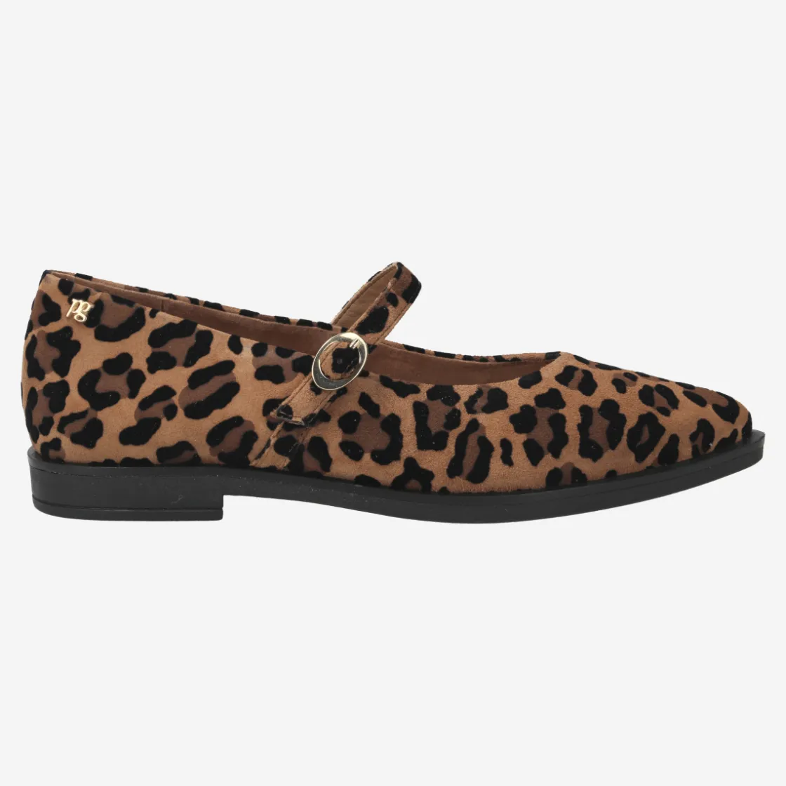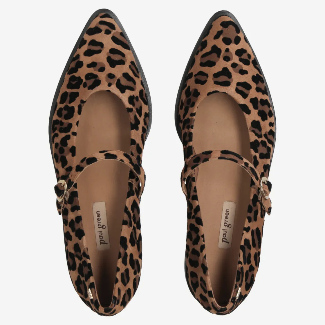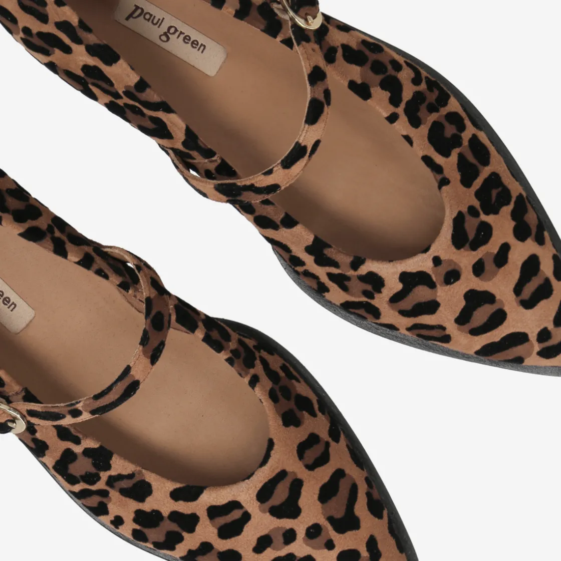 - Metal fastening, Mary Jane with strap for stability, stretch insert, logo appliqué, trendy animal look in leopard print, breathable