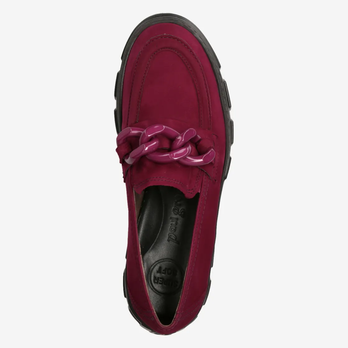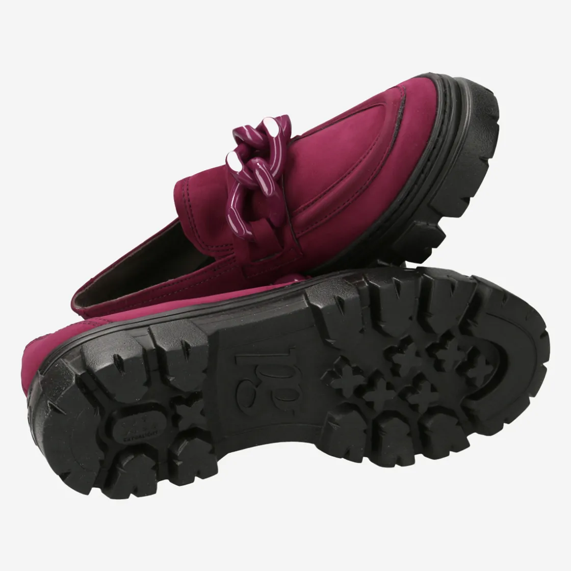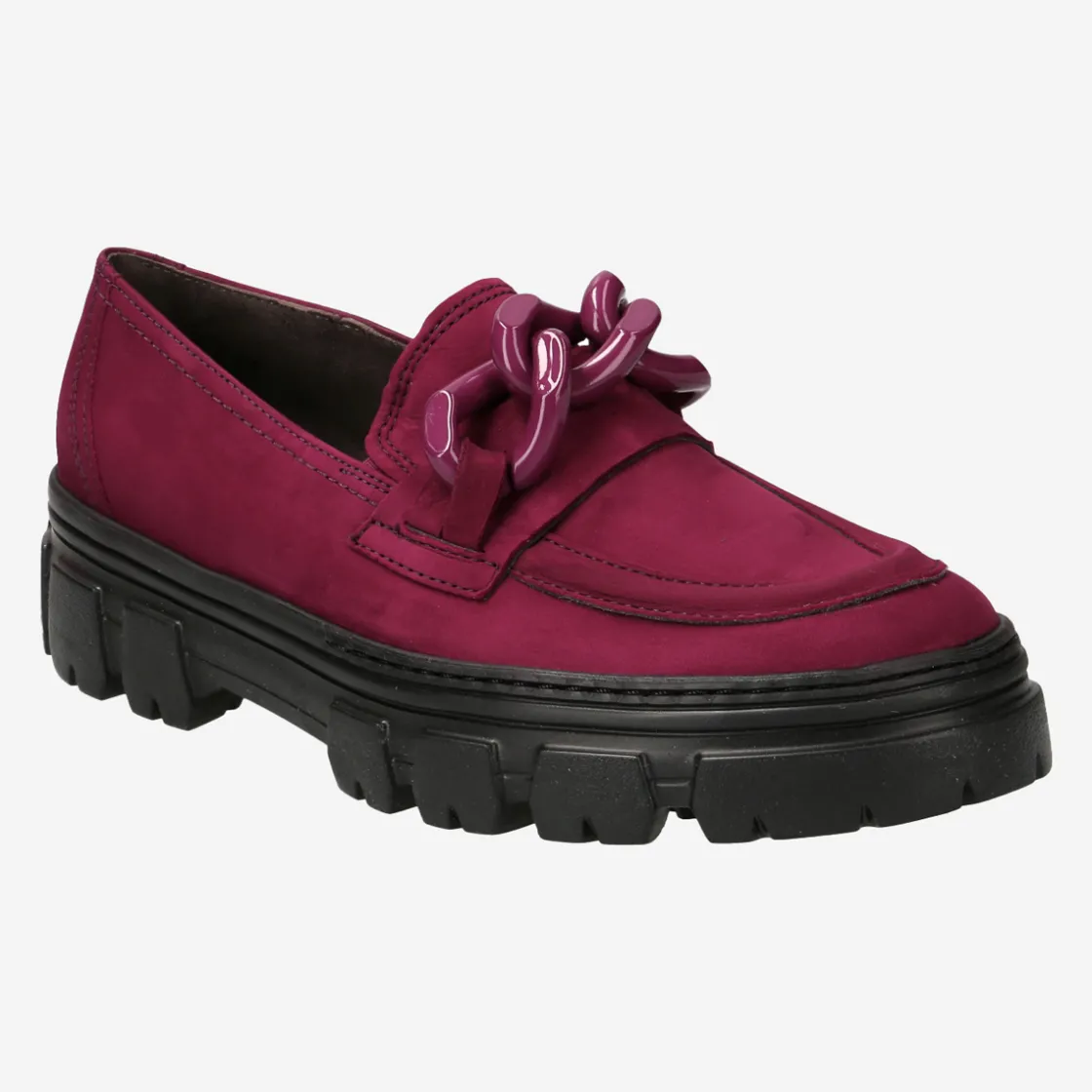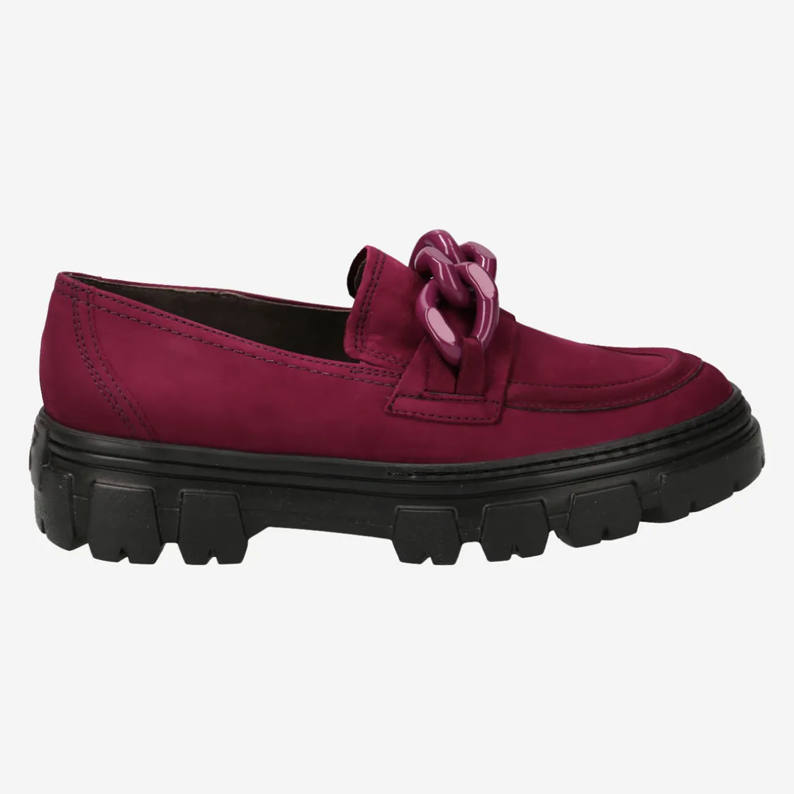 “Dopamine Dressing” is the fashion trend of the current catwalks! It’s all about bright colors that are just fun and positively stand out! Paul Green is also enthusiastic about it, and presents you with quite a lot of pleasure this fabulously beautiful penny loafer made of purple nubuck leather. The traditional milestone “business loafer” is complemented here by the classic loafer application. An effective chain application makes this cream piece the “It-piece” of the season!