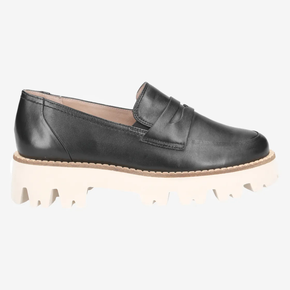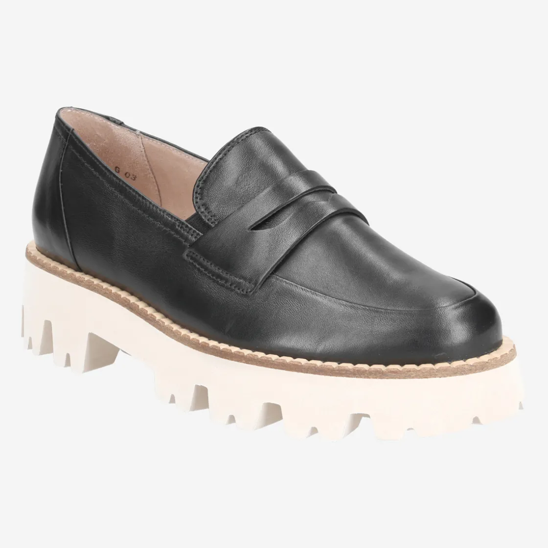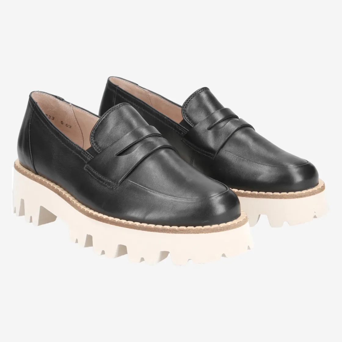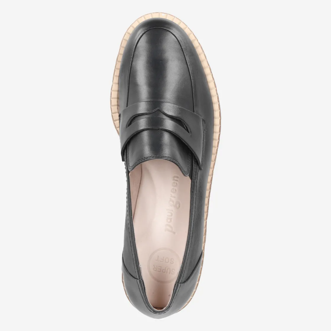 This SUPER SOFT loafer from Paul Green is sporty, stylish and will accompany you on an extended shopping trip as well as to the office. The black smooth leather makes a fashion statement with the bright sole and freshens up any look atmospherically. An elasticated side strap offers perfect support. The super soft footbed guarantees an excellent wearing comfort. Let yourself be inspired! Paul Green makes shoes with great passion and mastery, which is expressed in perfection, quality, style and fit. The result: a unique, uplifting wearing experience! The Paul Green effect.