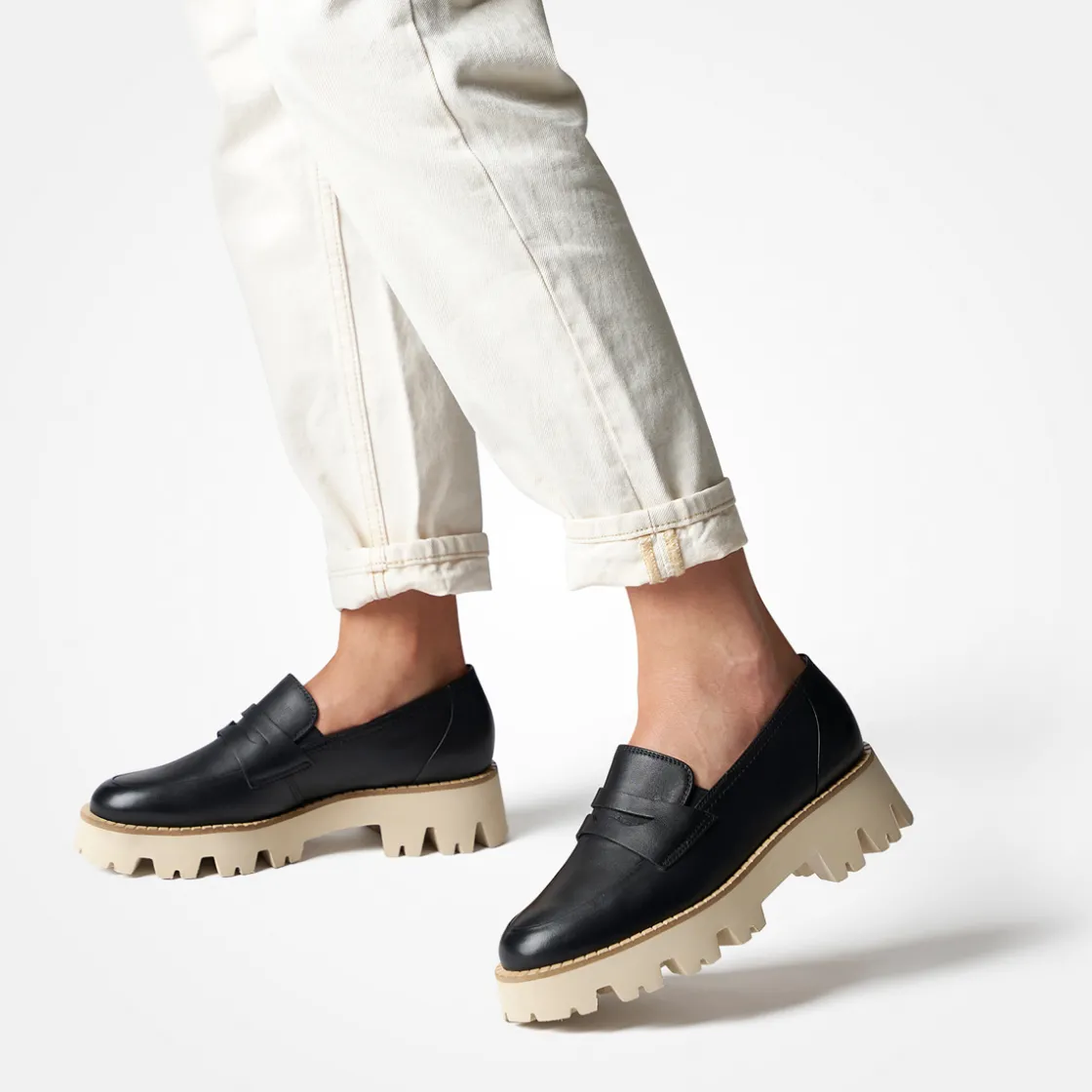 - SuperSoft, supple leather, soft heel cap, light and flexible outsole, soft footbed, block heel, platform sole, decorative stitching, loafer application, stretch inserts, breathable