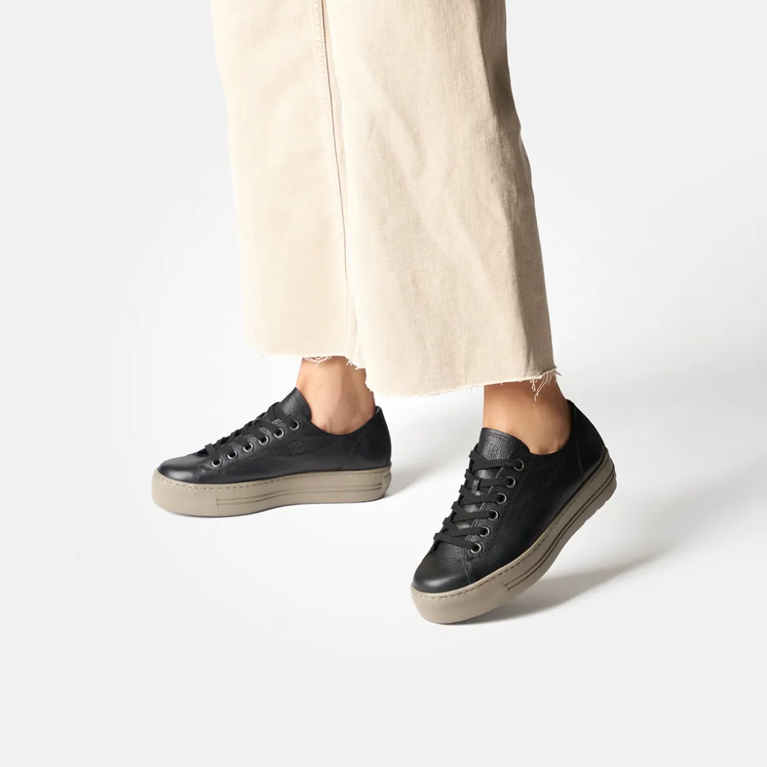 Your new SUPER SOFT fashion favorites for chic casual looks are these platform pumps from Paul Green. Crafted from premium smooth leather in black, this pair captivates with a minimalist design. These sneakers provide unbeatable comfort thanks to soft leather lining with fluffy terry cloth and extremely soft heel. The wide sole rounds off the overall look in a sporty way. Give your outfit creations a fashionable finish! Paul Green makes shoes with great passion and mastery, expressed in perfection, quality, style and fit. The result: a unique, uplifting wearing experience! The Paul Green effect.