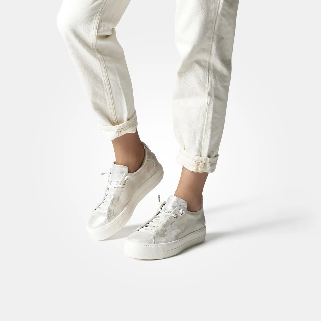 These SUPER SOFT Pauls by Paul Green are perfect for hip everyday styles. The model impresses with silver-colored metallic leather. The elastic laces ensure a relaxed feel. Thanks to the super soft finish, the pair provides extra comfort. The wide outsole convinces with a trendy look. A perfect duo for leisure or the office!