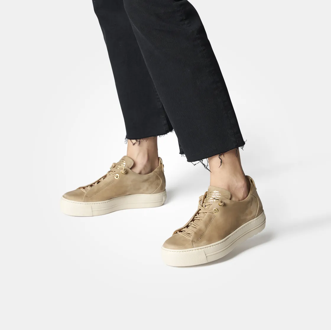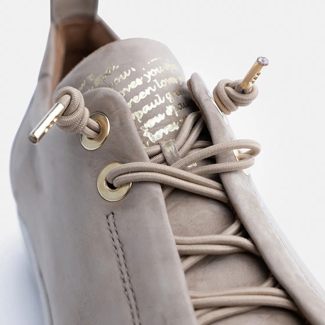 These SUPER SOFT Pauls from Paul Green are perfect for trendy everyday styles. The model impresses with smooth leather in beige and gold-colored details. The elasticated laces ensure a relaxed feel. Thanks to the super soft finish, this pair provides extra comfort. The wide outsole impresses with a trendy look. A perfect duo for leisure time or the office! Paul Green makes shoes with great passion and mastery, which is expressed in perfection, quality, style and fit. The result: a unique, uplifting feel! The Paul Green effect.