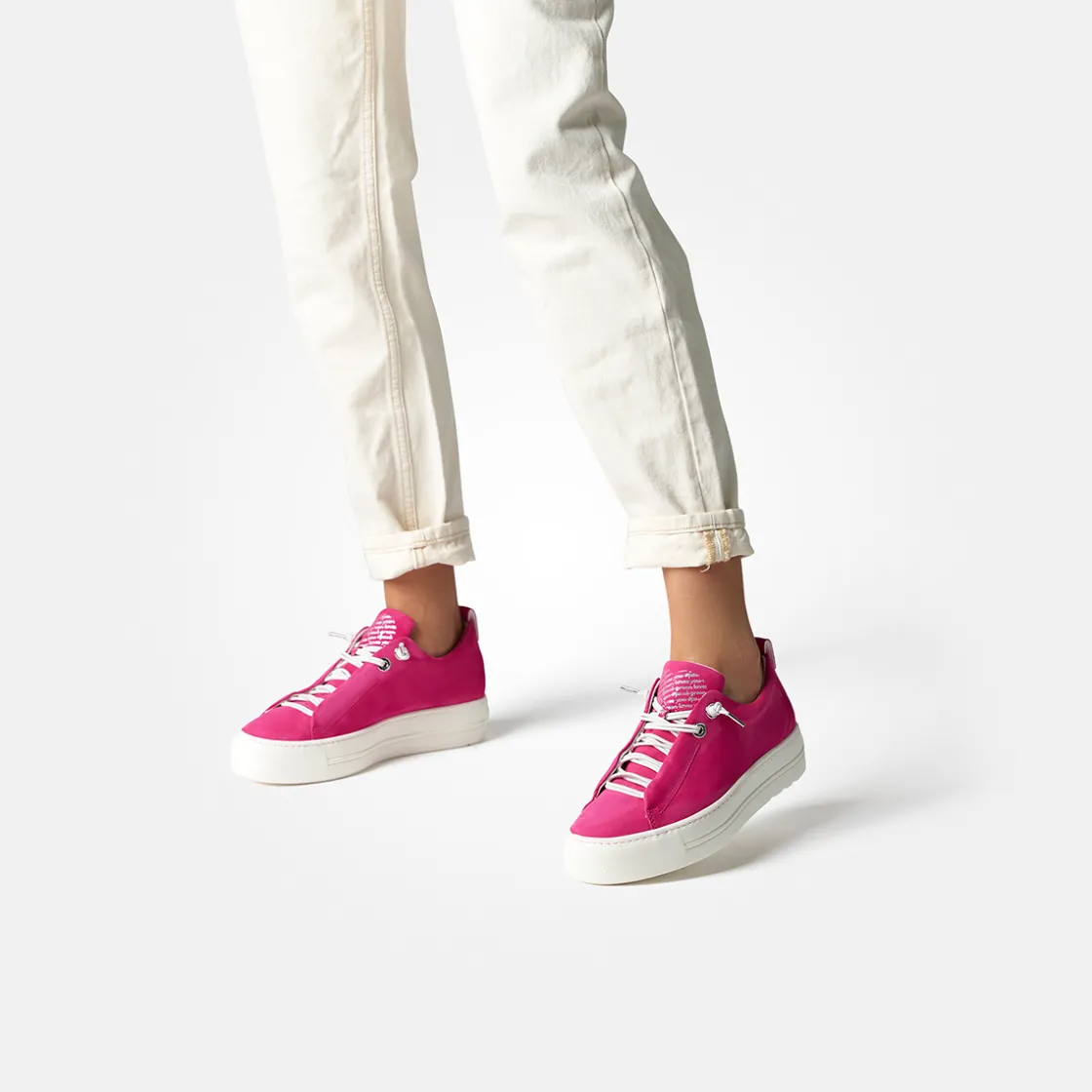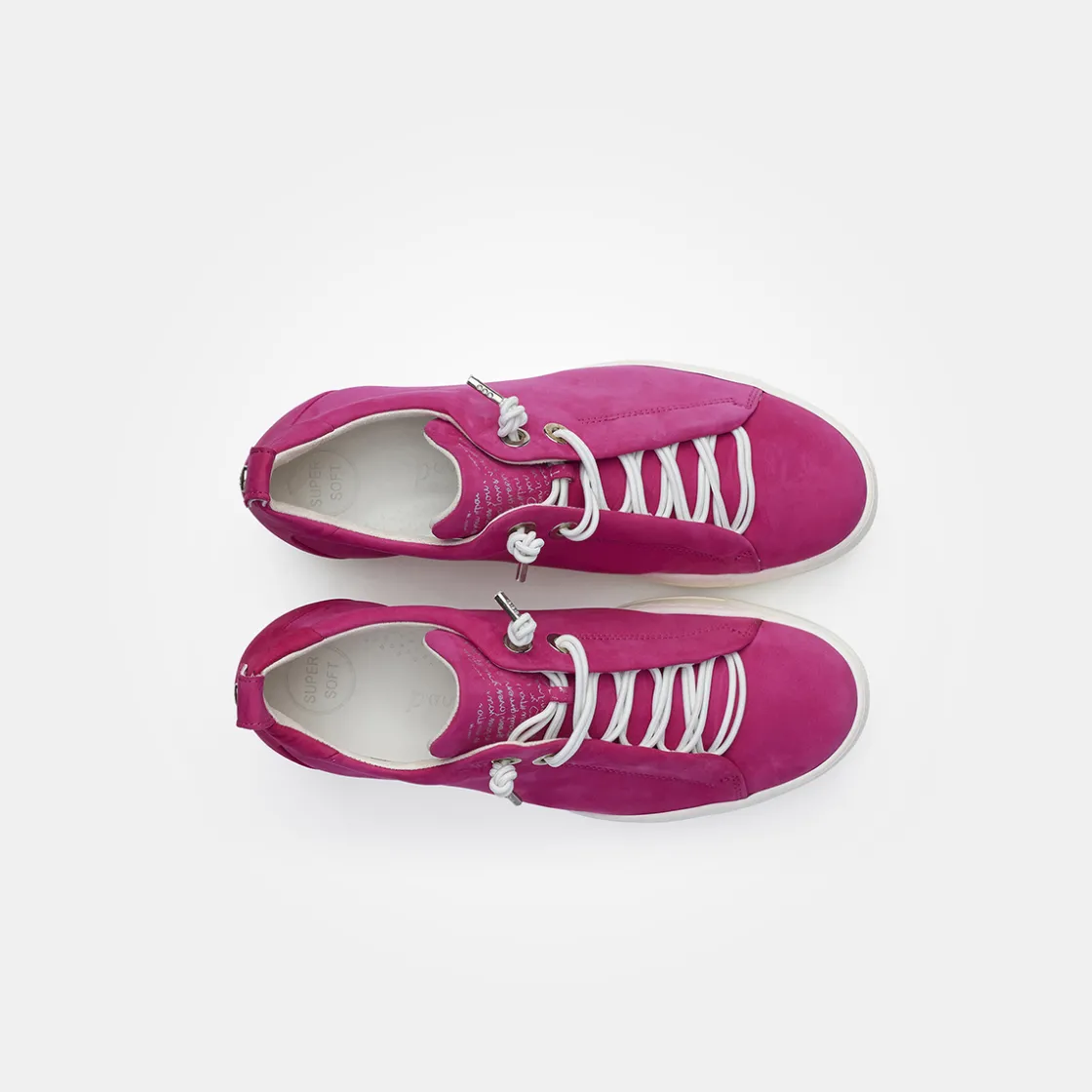 These SUPER SOFT Pauls by Paul Green are perfect for hip everyday styles. The model impresses with pink nubuck leather and noble details. The elastic laces ensure a relaxed wearing feeling. Thanks to the super soft workmanship, the pair provides extra comfort. The wide outsole convinces with a trendy look. A perfect duo for leisure or the office! Paul Green makes shoes with great passion and mastery, which is expressed in perfection, quality, style and fit. The result: a unique, uplifting wearing experience! The Paul Green effect.