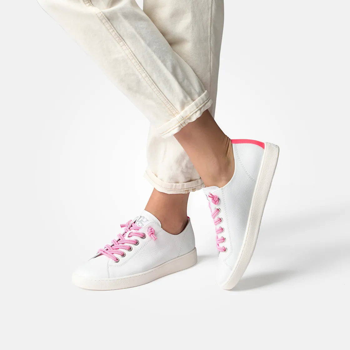 - Decorative stitching, neon pink leather appliqué, logo embossing in silver glitter, silver-colored eyelets, SuperSoft, supple leather, soft heel cap, lightweight and flexible outsole, soft footbed, breathable
