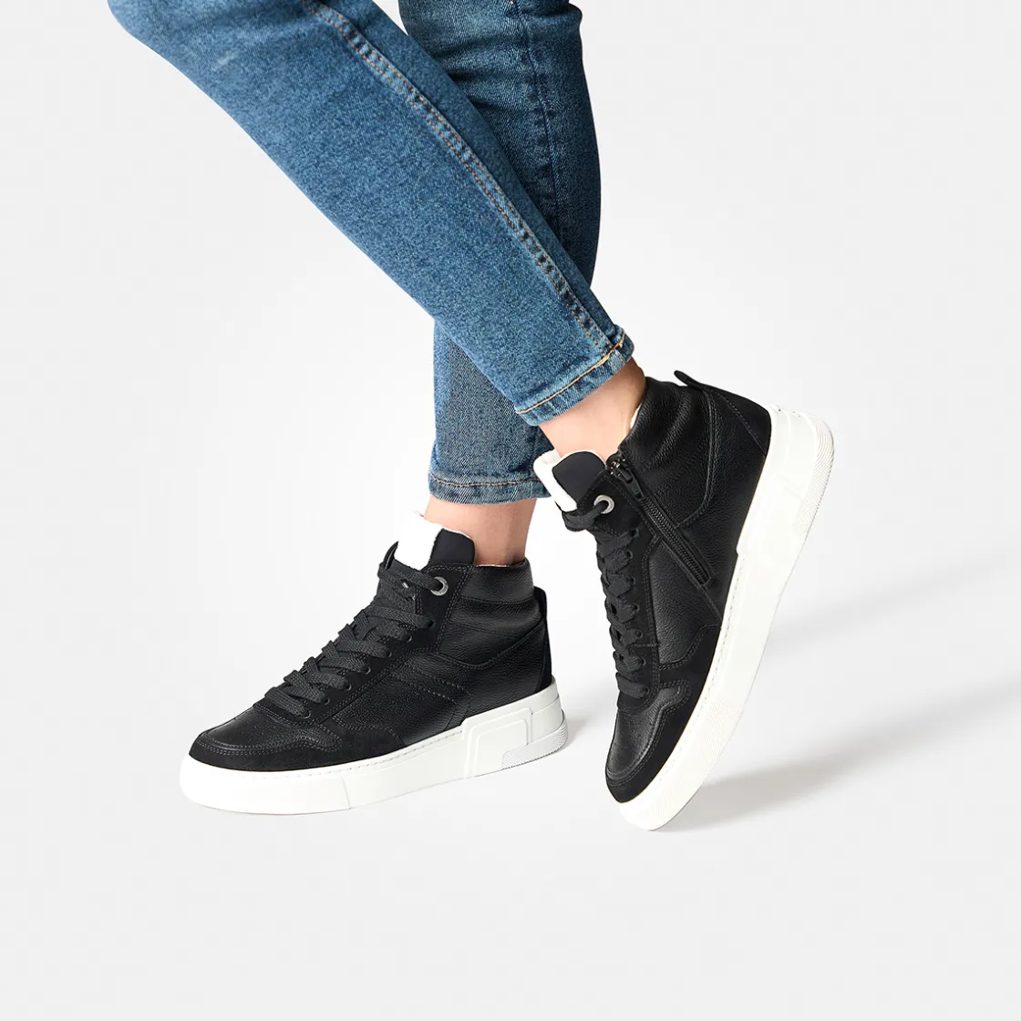 Immerse yourself in the world of urban chic with these trendy high-top trainers with an interchangeable footbed. The high-quality material and precise workmanship lend timeless elegance that adds that certain something to any outfit. With this pair, you can also experience tailor-made comfort by adjusting the insole to your own needs. This allows you to use your own orthopaedic insoles for maximum comfort. The flexible outsole lets you stride through the day with ease. Ready to take your shoe to a new level? Paul Green makes shoes with great passion and mastery, which is expressed in perfection, quality, style and fit. The result: a unique, uplifting wearing experience!