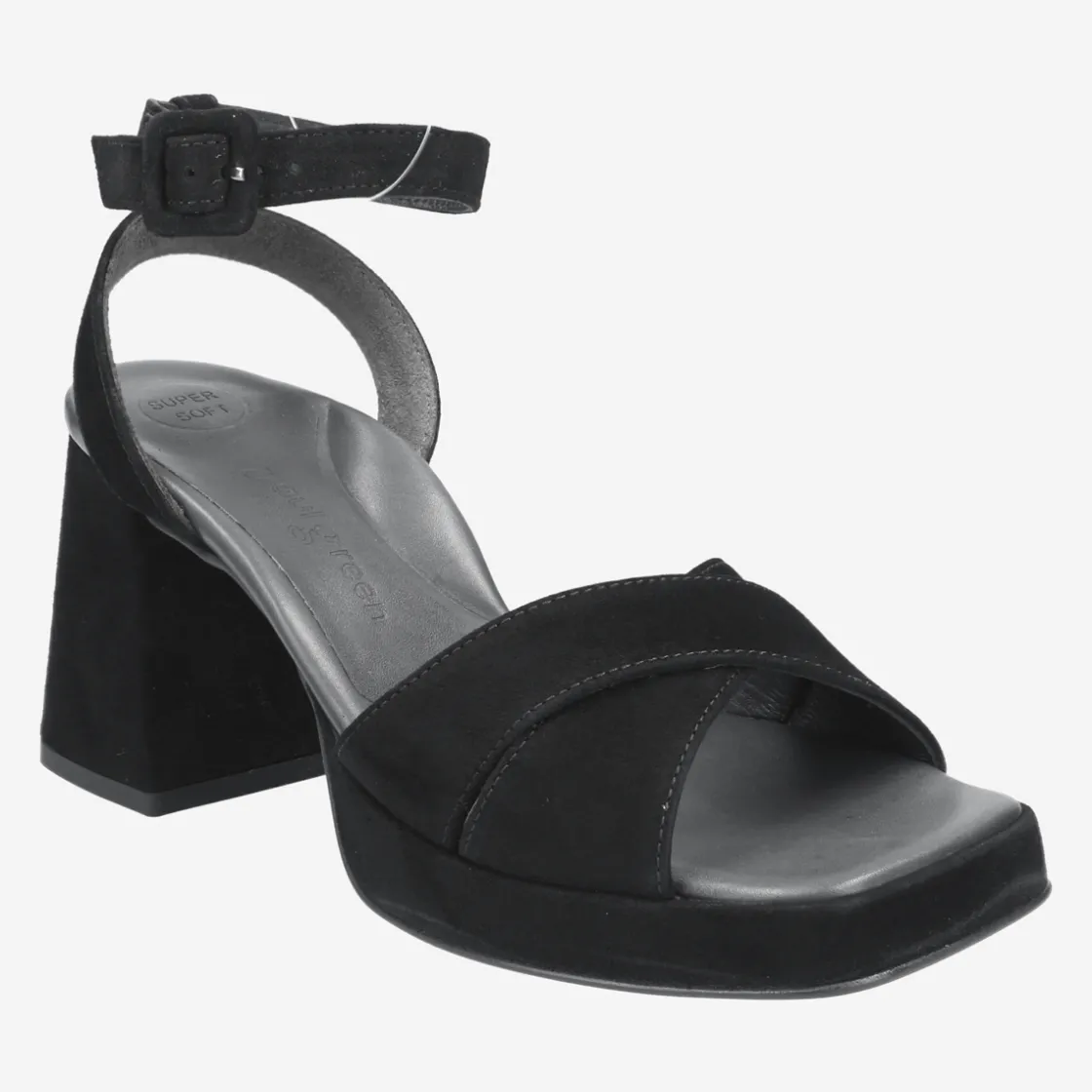 In the warm season, these SUPER SOFT sandals are hot fashion partners. The noble crossed straps made of black velvet leather convince with an ankle strap that can be individually adjusted to the foot by a clasp with a push button. The leather-covered block heel brings modernity to the look and beautifully accentuates the leg. Exude style with this pair! Paul Green makes shoes with great passion and mastery, expressed in perfection, quality, style and fit. The result: a unique, uplifting wearing experience! The Paul Green effect.