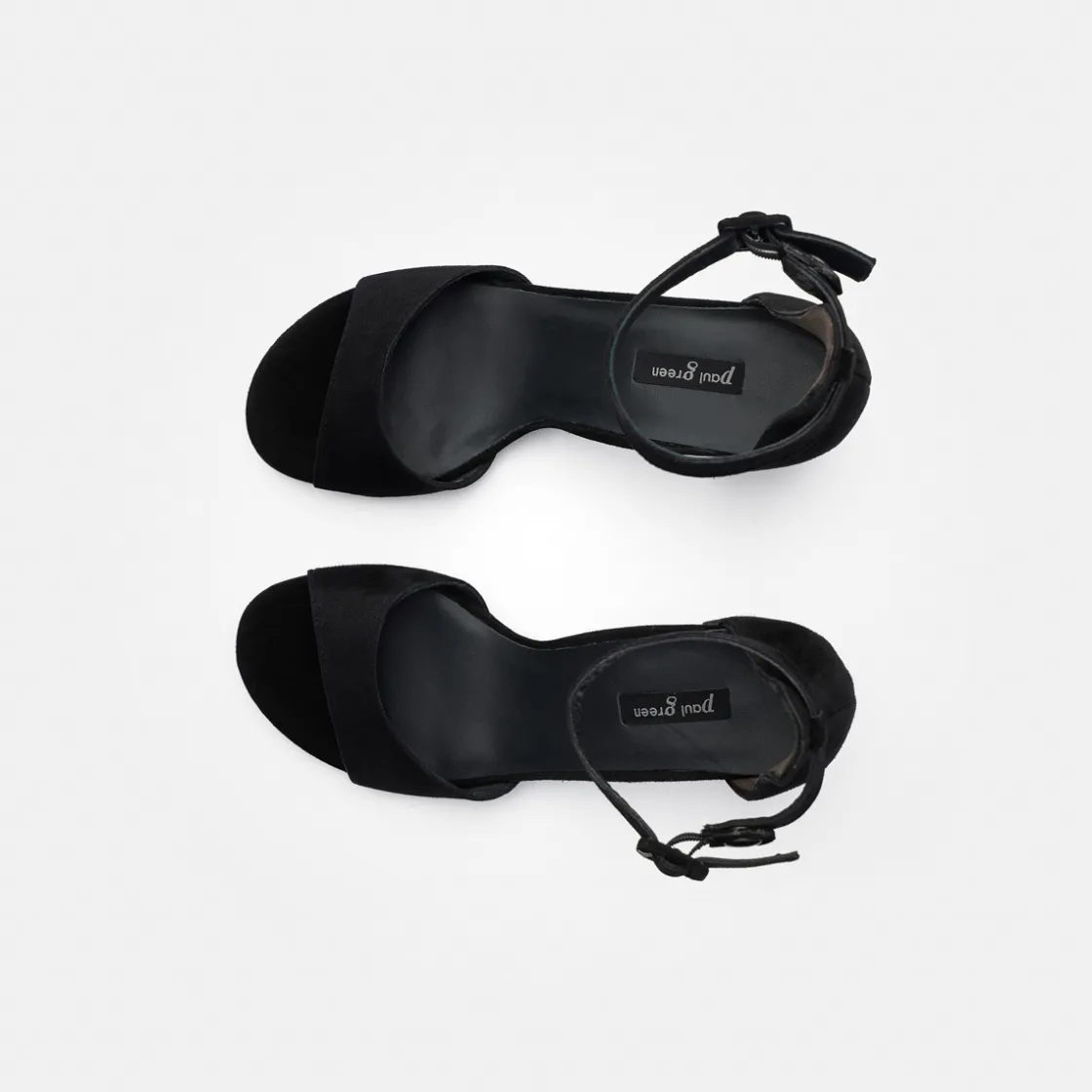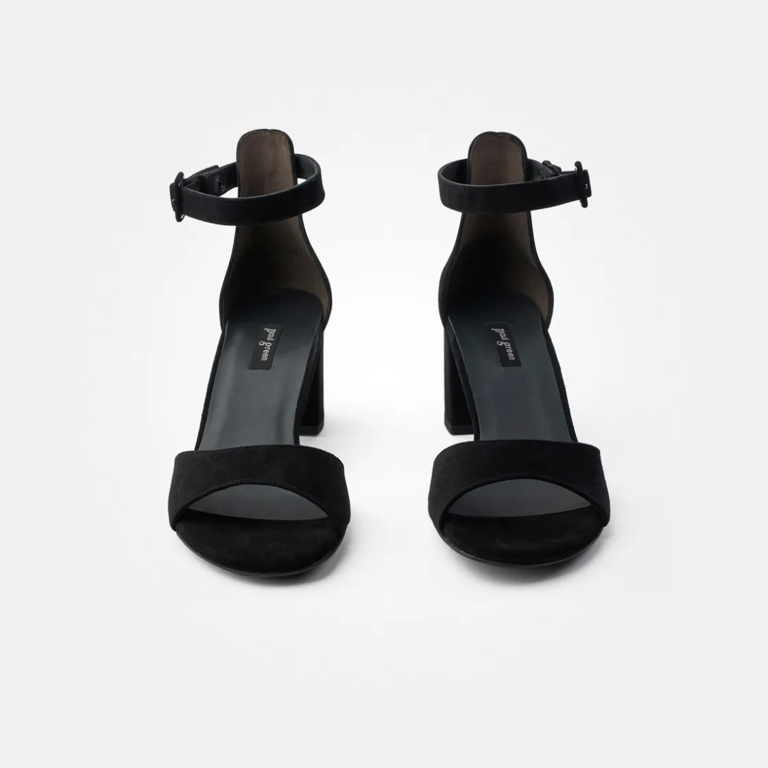 Stylish appearance in noble black! The velvet leather of this Paul Green sandal gives you an elegant gait, which is further supported by the clean design. The beautiful block heel gives you an extravagant silhouette. The delicate ankle strap with adjustable buckle ensures perfect comfort and convinces thanks to the push button for quick on and off. Comfort in cool design!, Reduced single pair!