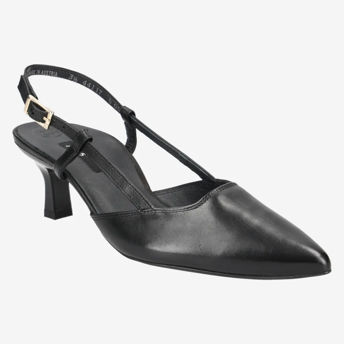 These SUPER SOFT sling sandals from Paul Green present themselves feminine and extravagant. The pair of soft smooth leather in black nestles comfortably against the foot. Not only the shapely funnel heel in moderate height draws the eye. Also the delicate straps with decorative buckle enchant. Enjoy a carefree, timeless elegance with this model! Paul Green makes shoes with great passion and mastery, which is expressed in perfection, quality, style and fit. The result: a unique, uplifting wearing experience! The Paul Green effect.