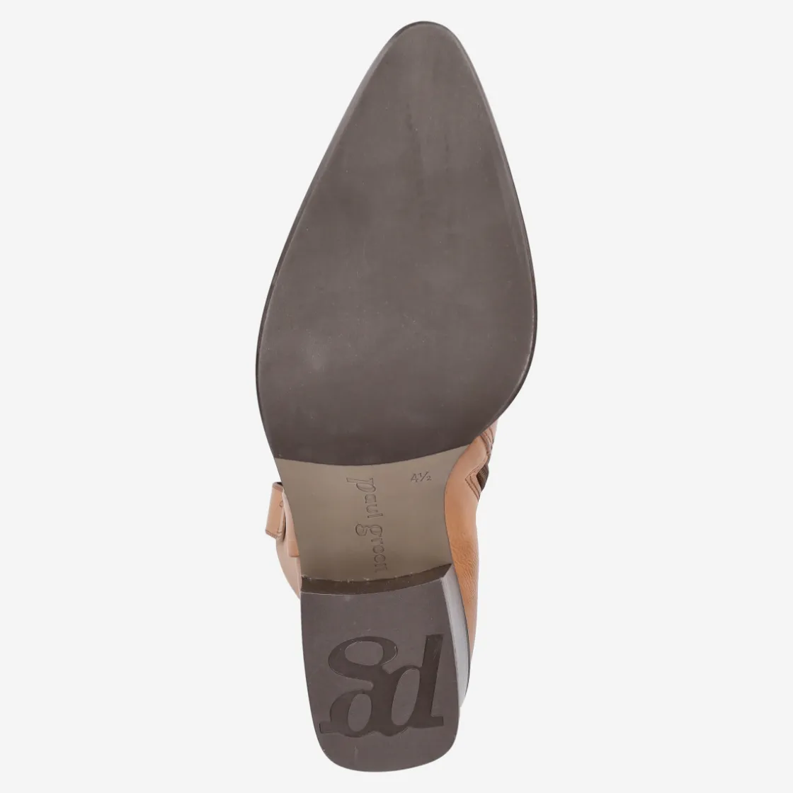 - Block heel, vintage look, decorative stitching, stretch inserts, entry loop, biker-style leather appliqué, decorative metal fastening, western-look design, breathable