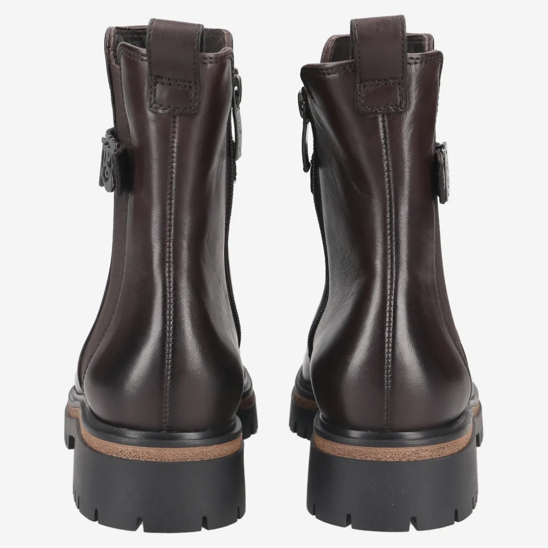 - Made in Europe PFI Eco-Label LWG – Leather Working Group certified, block heel, zipper, stretch insert, embossed logo, decorative metal fastening, logo appliqué, decorative stitching, pull tab