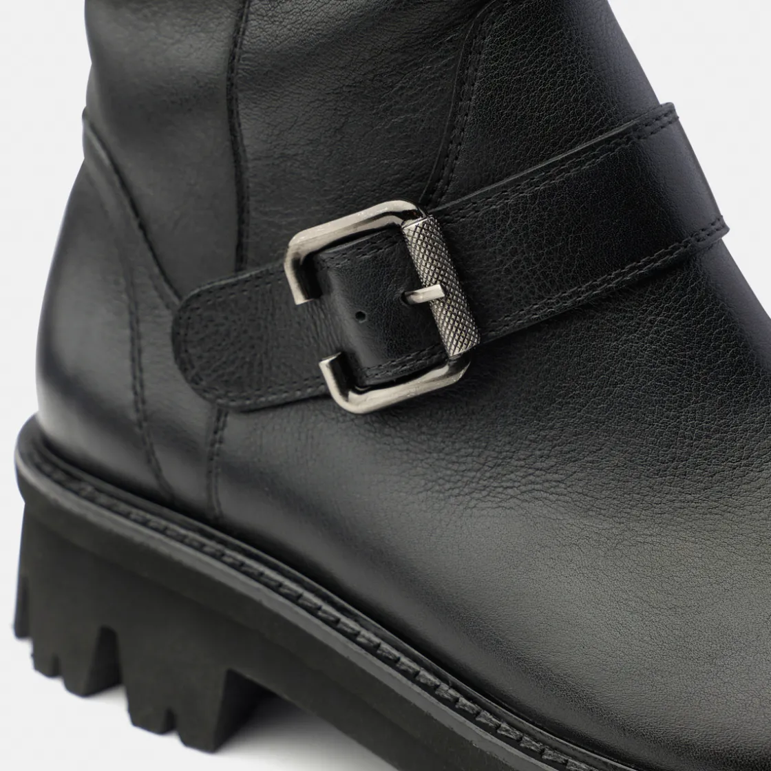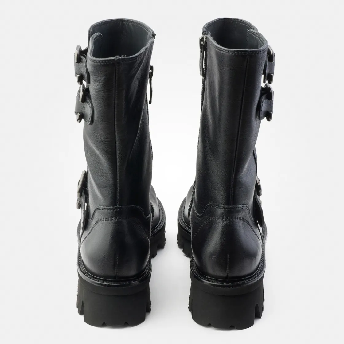 - Made in Europe PFI Eco-Label LWG – Leather Working Group certified, decorative metal fasteners, zipper, decorative stitching, block heel, platform sole