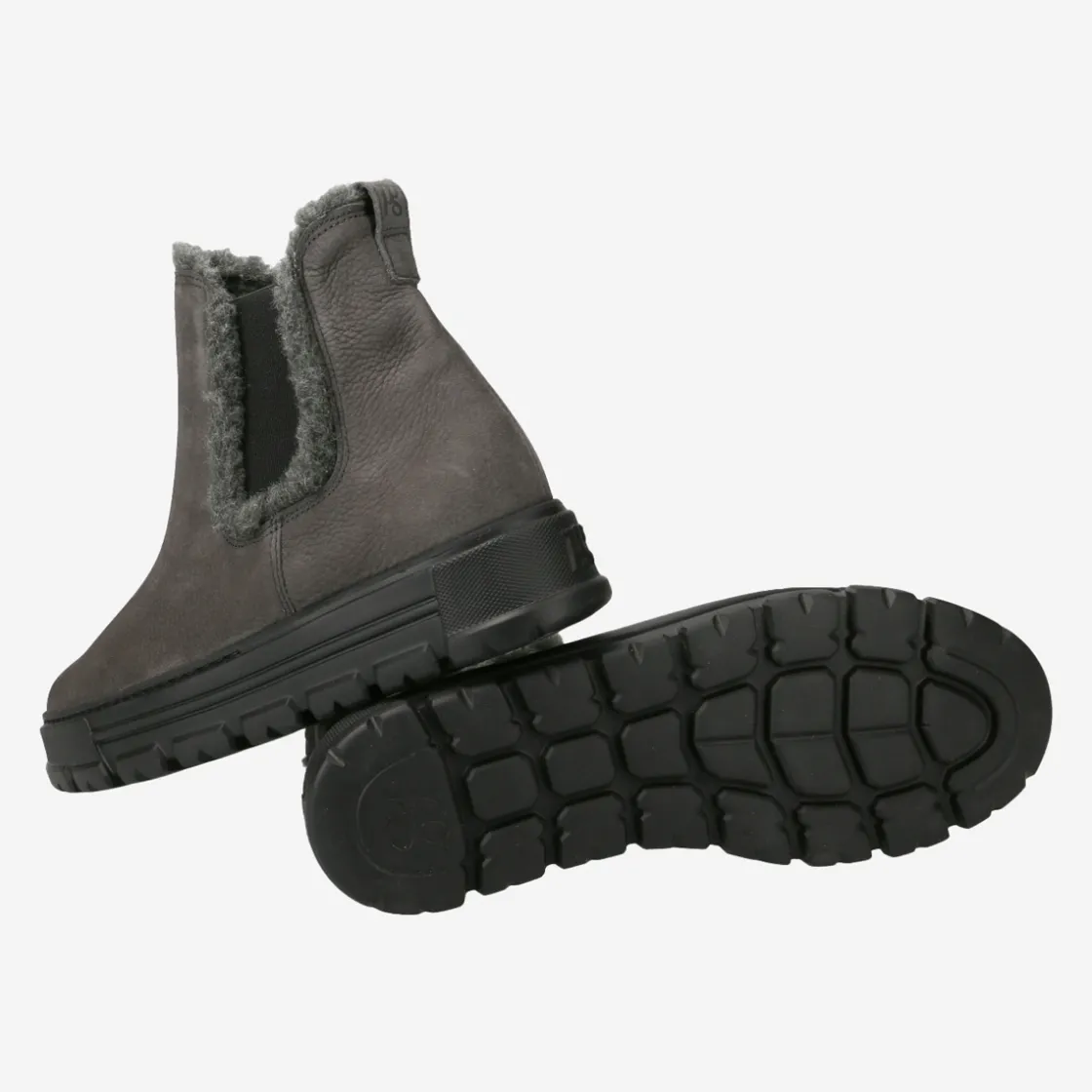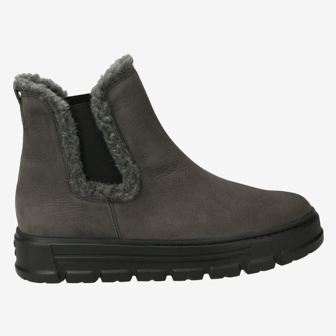 These warm Chelsea boots from Paul Green are among the favorites of modern casual looks. Especially when they’re as comfortable as this pair in gray nubuck leather. Cozy merino warm lining (mulesing-free) on the inside gently nestles against the foot and gives a comfortably warm feeling. The stretch inserts on the sides are typical of sporty chic and ensure convenient entry and exit. Pleasantly flat and comfortable is also the flexible outsole. A special model for cold days!