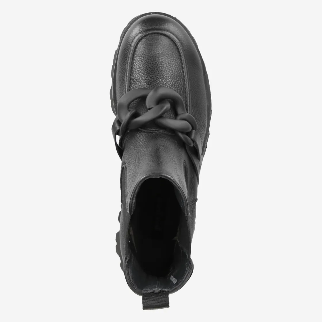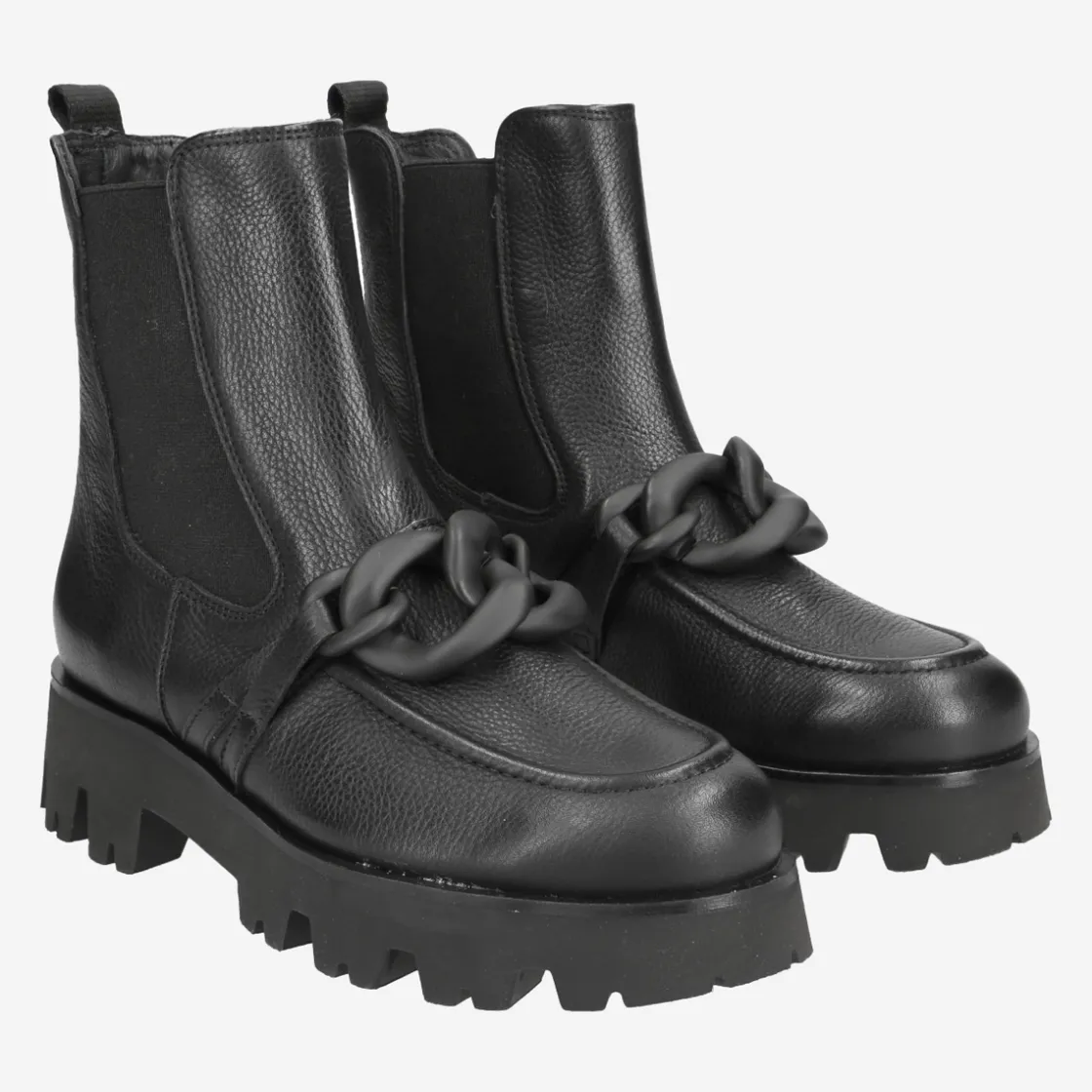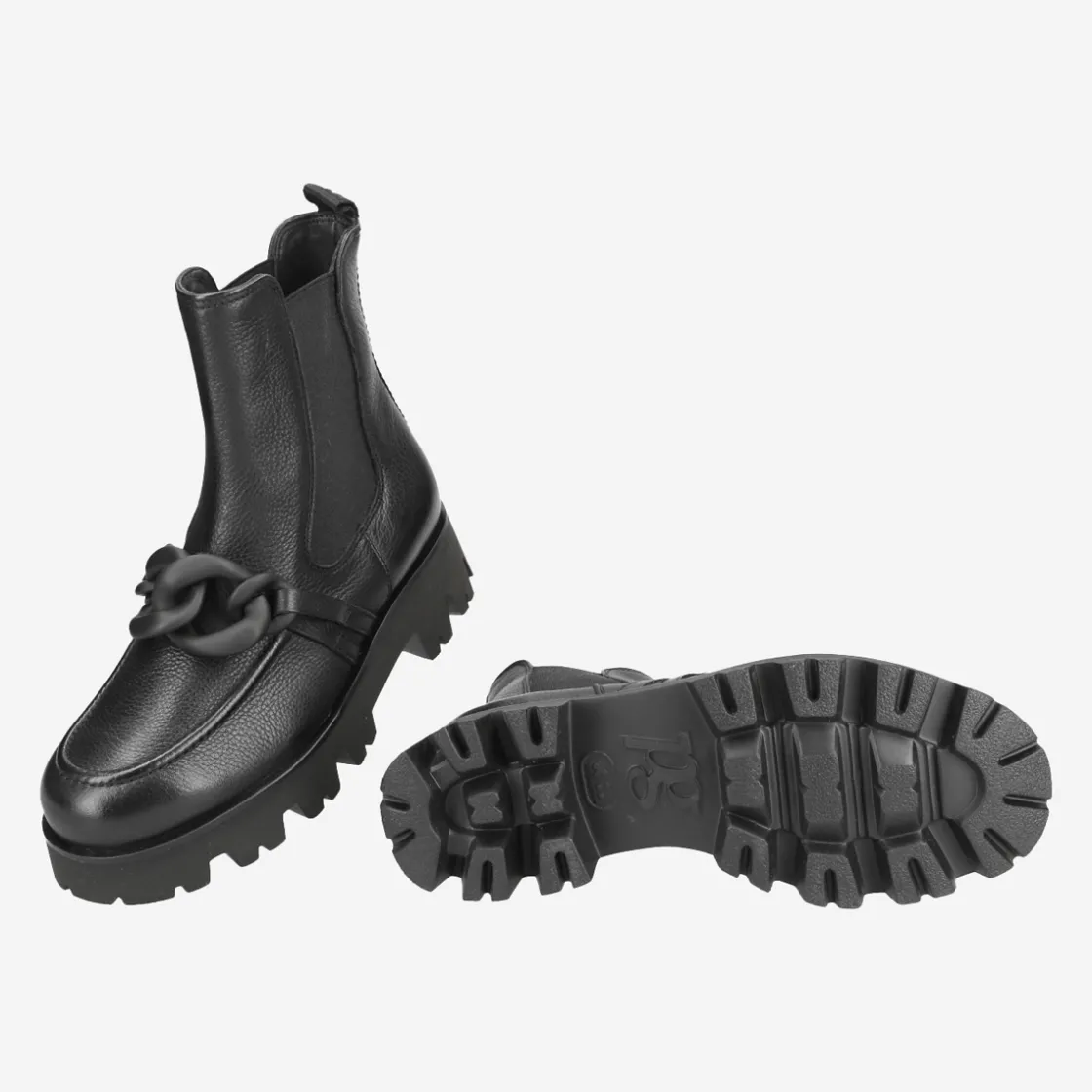 Comfort and trend become one with these Chelsea boots from Paul Green, transforming the streets into a catwalk. Soft smooth leather in black gently hugs the foot and is set off by an exquisite chain in the front. Two elastic inserts on the sides ensure an optimal fit. The combination with the extremely flexible outsole round off the style. Paul Green shoes have a DNA of elegance and sportiness. This DNA is in every single shoe and in the entire range.