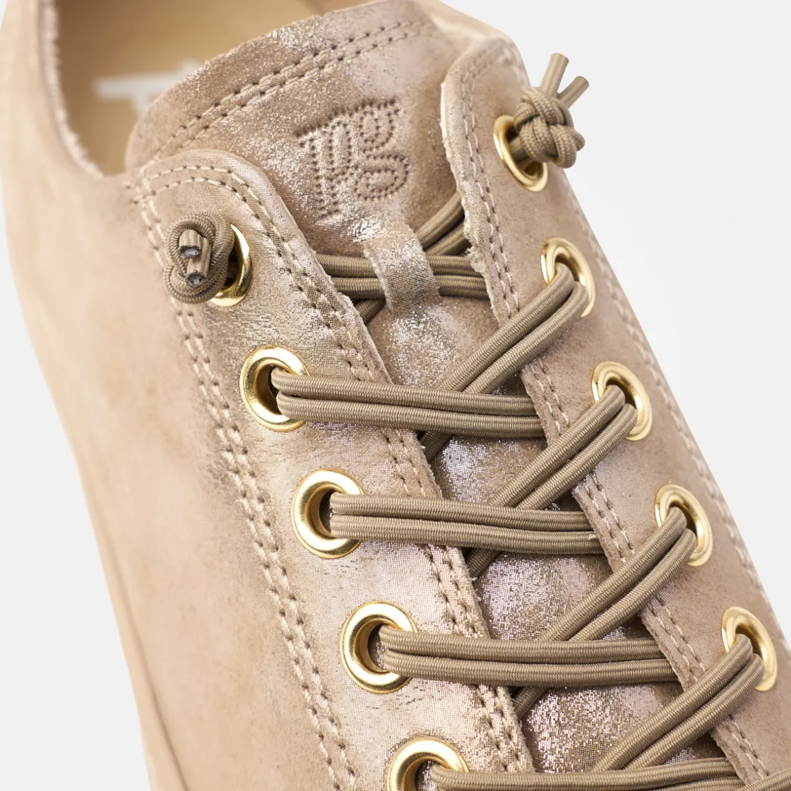These SUPER SOFT Pauls with RELAX-WEITE complete any chic city wardrobe. The classic silhouette is made from soft velvet leather with a metallic coating and the elasticated laces ensure optimum support. The leather lining with cozy TENCEL™ fibres also ensures perfect comfort. This model also has extra functionality. The soft footbed is removable and can be replaced with your own insole if desired. The elastic outsole will also spoil you with the best comfort. Perfect with denim or casual skirts, every Paul Green shoe is made by hand in up to 160 steps and then checked. This ensures that they meet the high standards of fit and quality.