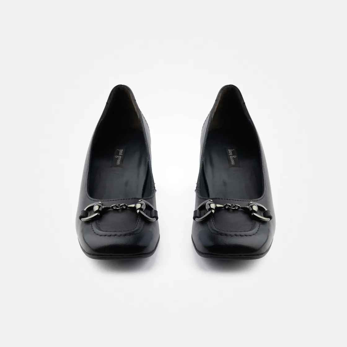 - Block heel, loafer appliqué, horsebit appliqué, breathable