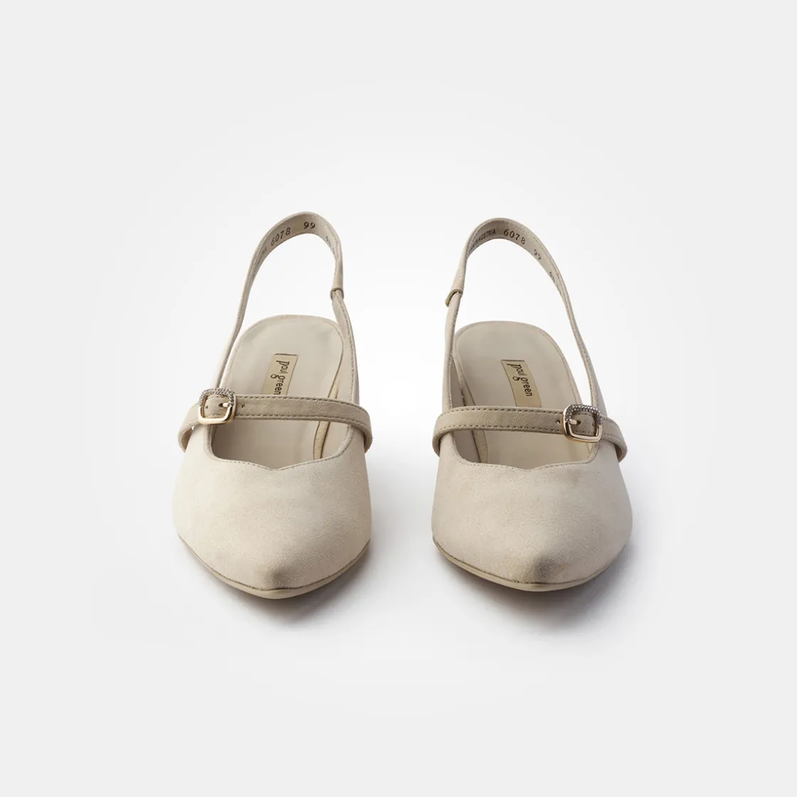 These sling sandals by Paul Green will enchant you with their soft beige velvet leather and beautiful finish. The tapered model has a delicate and feminine silhouette thanks to the fine strap with an elasticated band and elegant buckle. The elasticated outsole and beautifully shaped funnel heel offer optimum comfort. Don’t miss out on these elegant companions! Paul Green makes shoes with great passion, which is expressed in perfection, quality, style and fit. The result: a unique, uplifting feel!