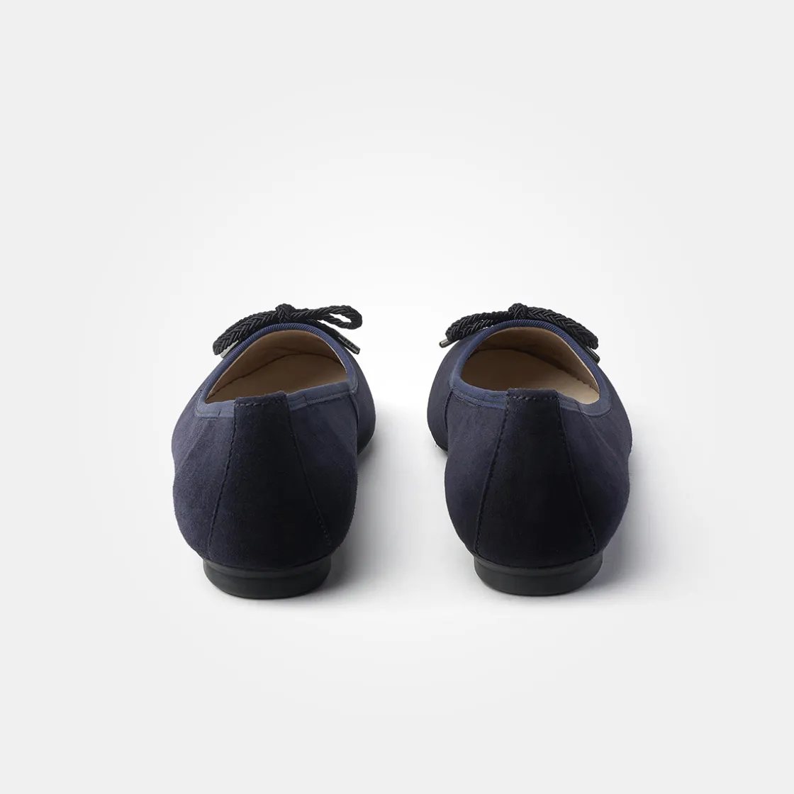 The ballerina underlines the feminine look of any outfit with its simple design. Paul Green complements this blue model with a playful bow application that skillfully rounds off your look. The midnight blue suede nestles comfortably against the contour of your foot, giving you flexibility and comfort.