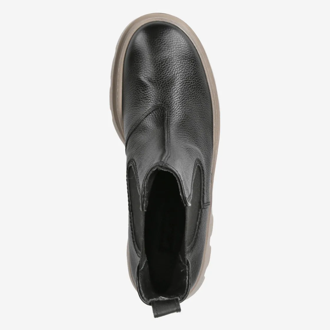 These SUPER SOFT Chelsea boots from Paul Green are among the favorites of modern casual looks. The black smooth leather with the elastic inserts on the sides of the shaft present the typical classic sporty chic and ensure a comfortable entry and exit. The clean lines elevate the pair in style. With the progressive outsole, you will advance to a fashionable trend partner. Discover new styles! Paul Green makes shoes with great passion and mastery, expressed in perfection, quality, style and fit. The result: a unique, uplifting wearing experience! The Paul Green effect.