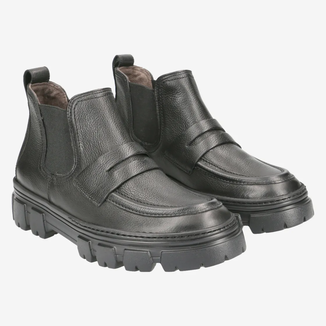 You can rely on these SUPER SOFT Chelsea boots from Paul Green. Equipped with side elastic inserts, the model impresses with black smooth leather and chic moccasin stitching. The progressive outsole rounds off the design perfectly. The right companion for the office or the city! Each Paul Green shoe is handmade in up to 160 steps and then tested. This ensures that it meets the high requirements for fit and quality.