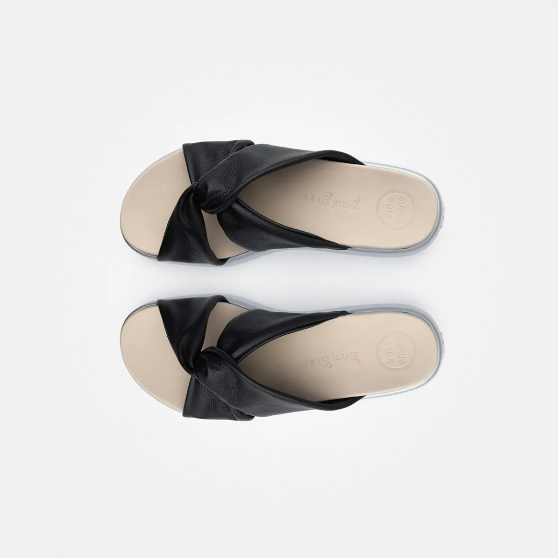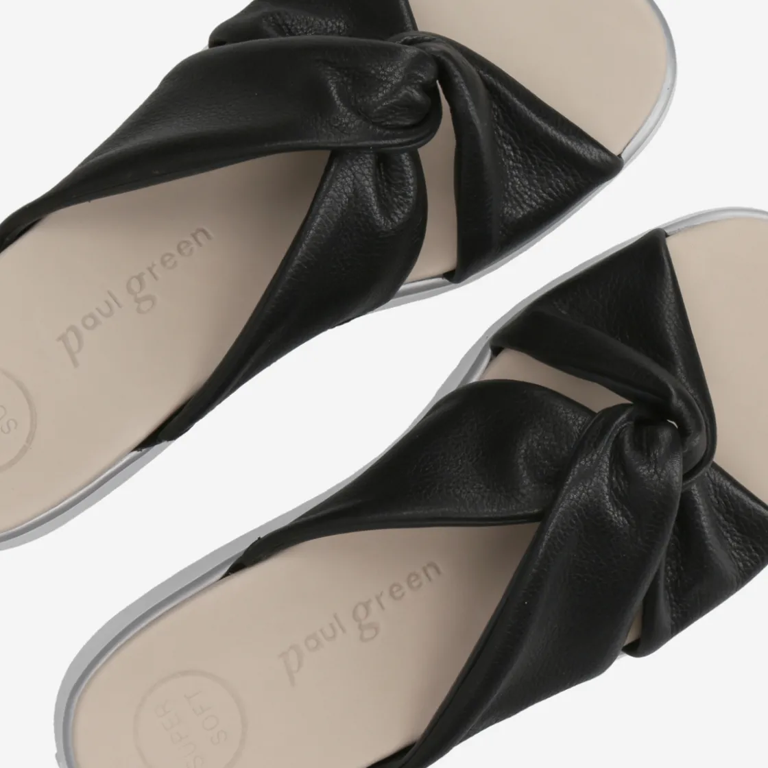 These comfortable SUPER SOFT mules by Paul Green will win you over with their unique look. The beautiful design with crossed straps made of soft smooth leather in black, together with the comfortable platform sole, ensures a high level of comfort. An elastic band on the inside provides optimum support. Let yourself be inspired by this comfortable pair! Paul Green shoes have a DNA of elegance and sportiness. This DNA can be found in every single shoe and in the entire range.