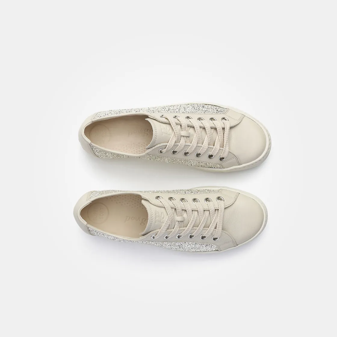 Give your outfit creations a stand-out finish with these SUPER SOFT Pauls from Paul Green! The extravagant mix of high-quality smooth leather with glitter elements in beige is complemented by sporty laces. The super soft leather lining makes them extremely comfortable to wear. The lightweight, durable outsole provides an extra dose of cosiness. This pair is the perfect companion for a city safari! Paul Green stands for women’s shoes of the highest quality, made with craftsmanship and passion. Each of our shoes is made by qualified master shoemakers in up to 160 steps. The result is quality that you can see and feel.