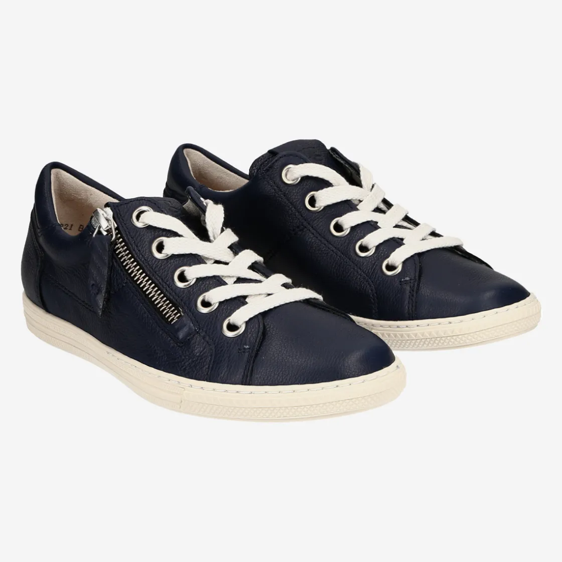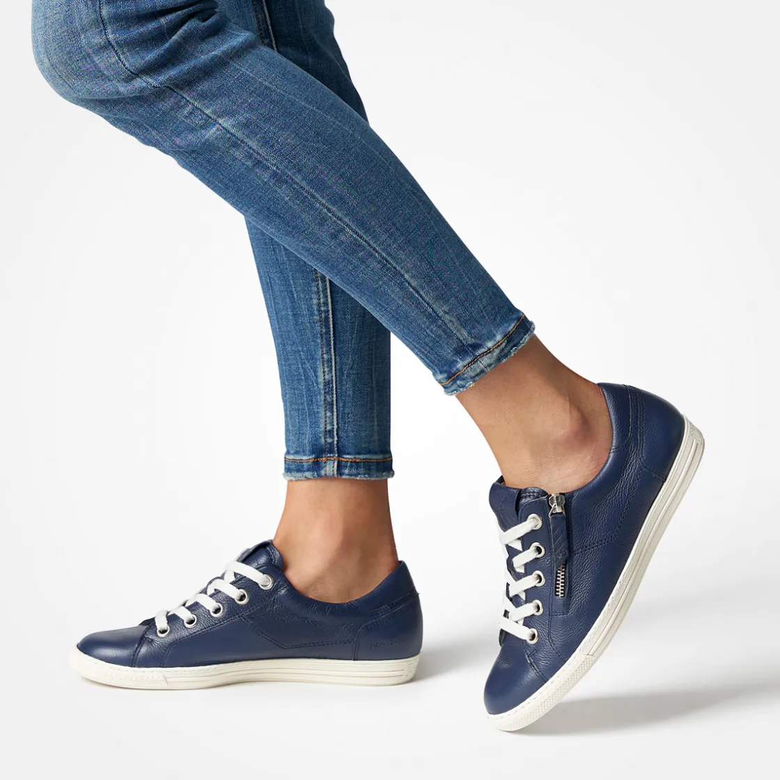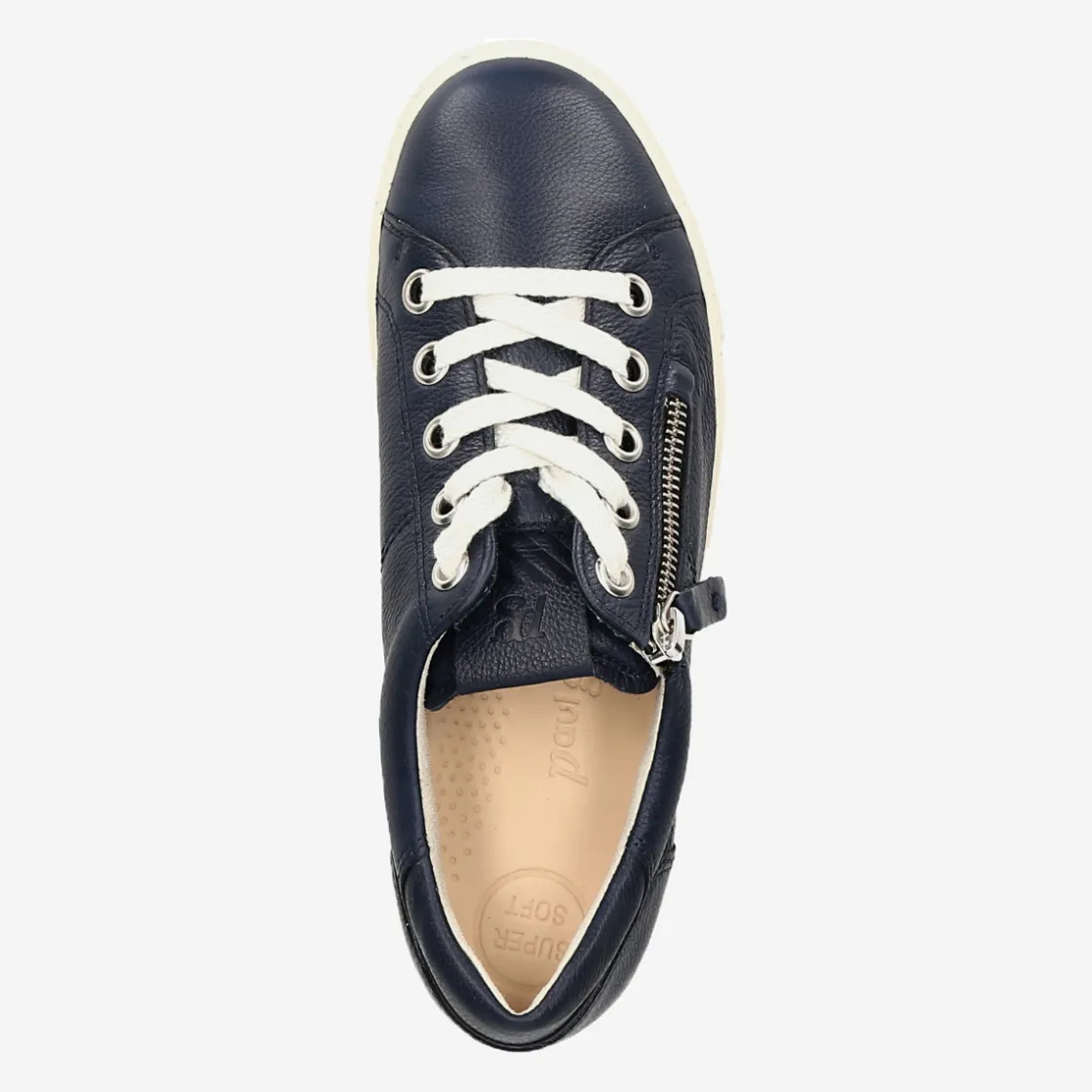 The simple lace-ups from Paul Green score stylishly with their blue coloring and the strong contrast to the sole. This is supported by the skillfully placed contrast stitching and the bright silver shimmering eyelets. A practical zipper makes getting in and out of the model child’s play, while the lacing ensures a lasting pleasantly firm fit. The super-soft heel ensures a very special wearing comfort.