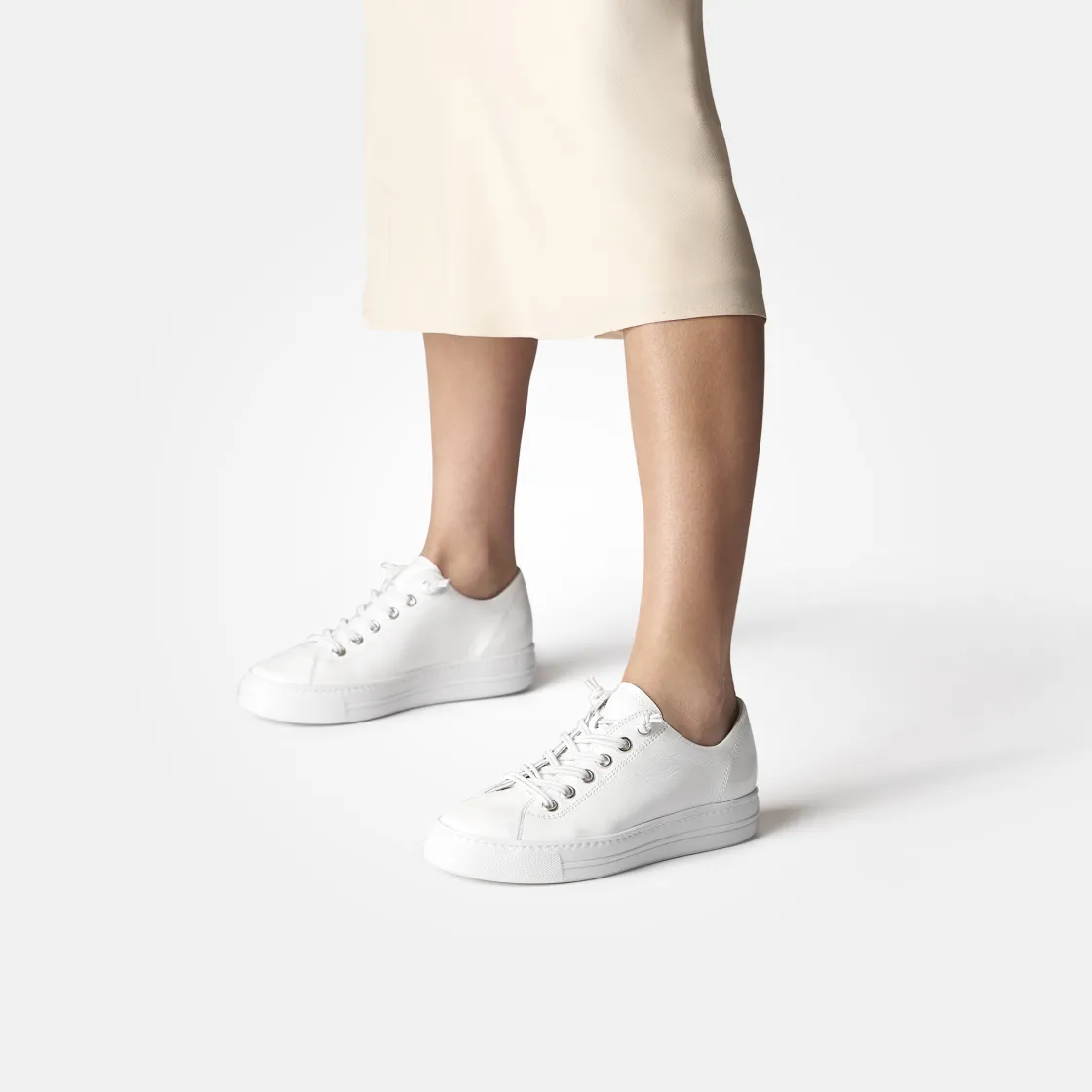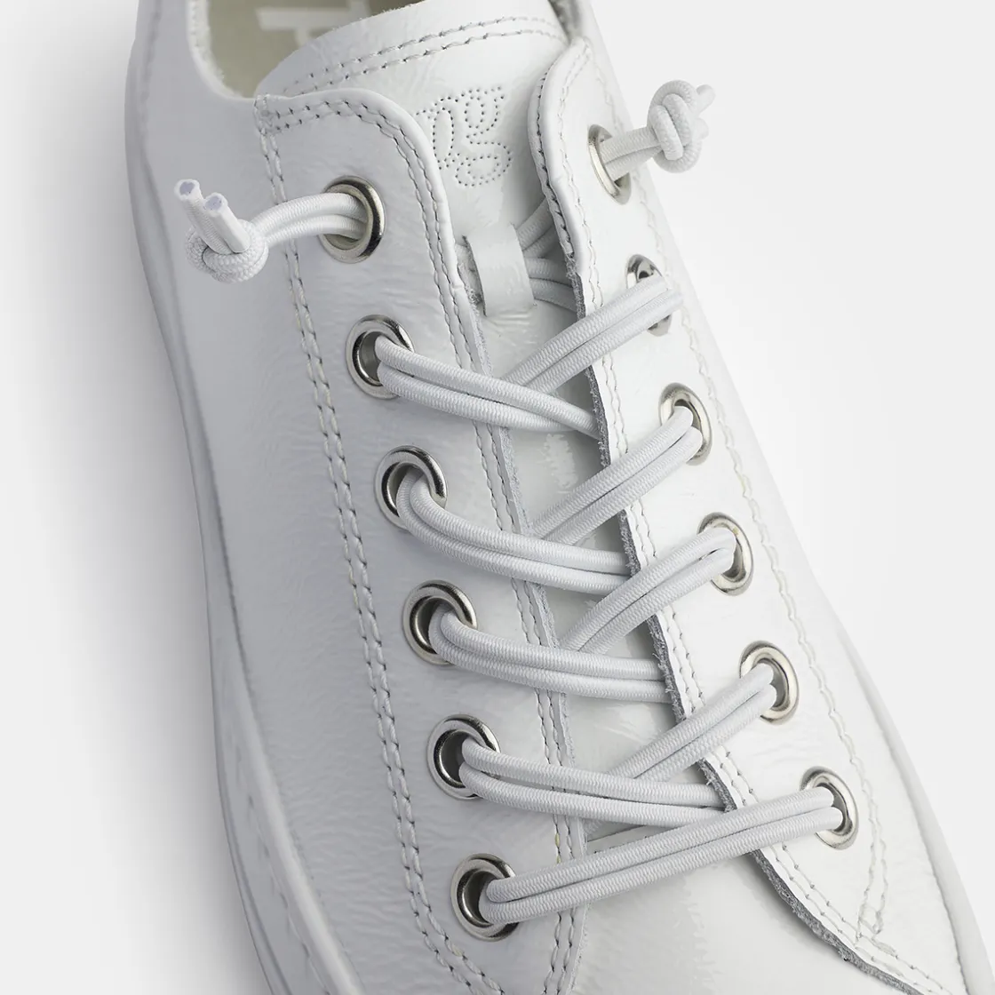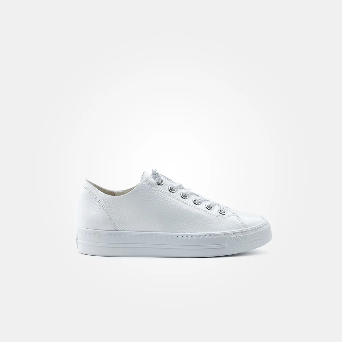 Look forward to this iconic sneaker in white patent leather! Paul Green relies on a double rubber lacing for this model, which makes putting on a breeze, and looks really stylish! The inner lining made of the finest leather and terry cloth gives you a wearing pleasure of the most pleasant kind! Experience the all-rounder, and enjoy casual look in white patent!