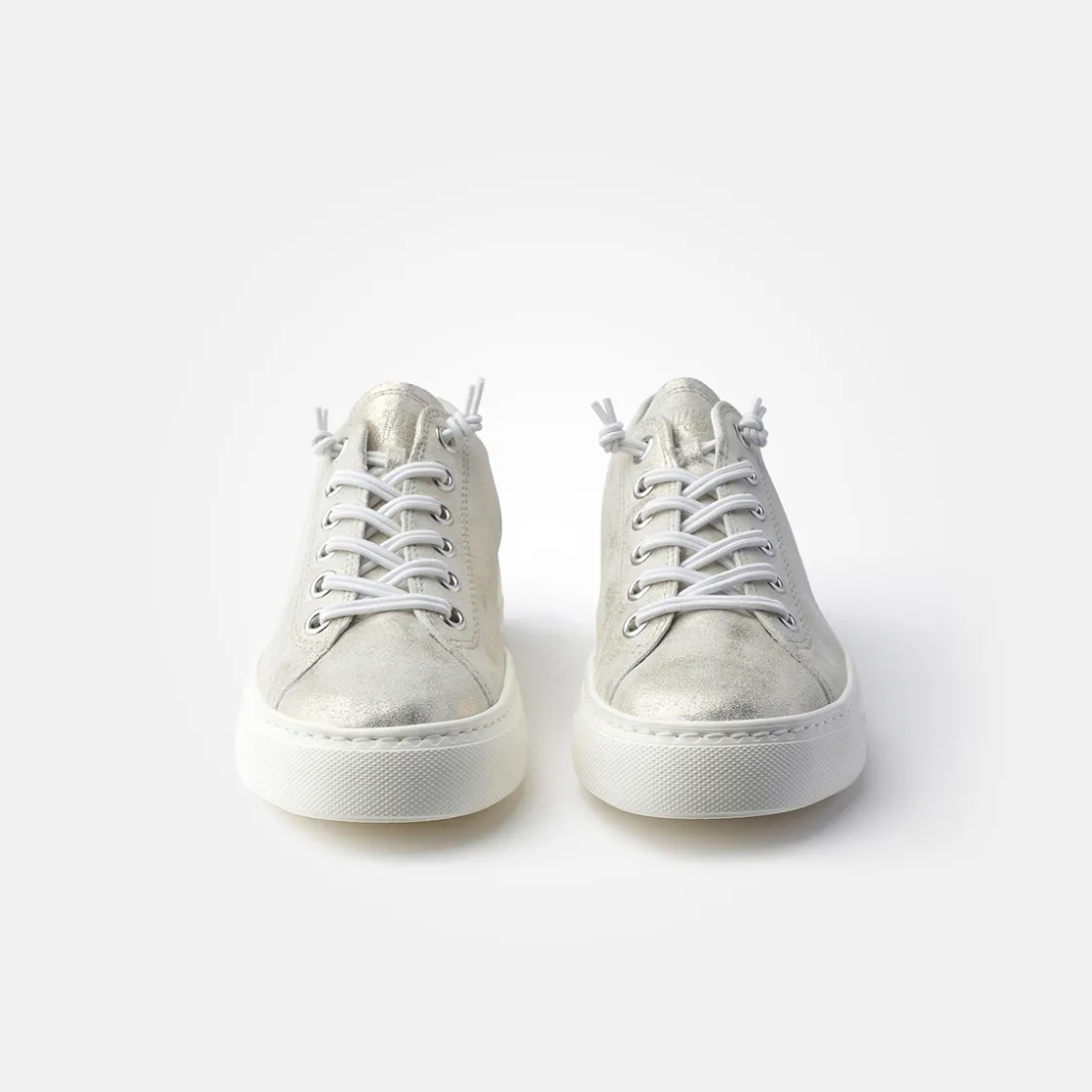 Sneakers are cult! And this beige model in trendy metallic look is the absolute must-have of the coming season! Paul Green complements the coated leather with an innovative lacing made of double rubber laces! This makes putting on and taking off a breeze. The SuperSoft technology, the fantastically comfortable Relaxweite, and the interchangeable leather footbed give you wonderful comfort! The inner lining made of fluffy terry cloth provides an airy light wearing feeling.