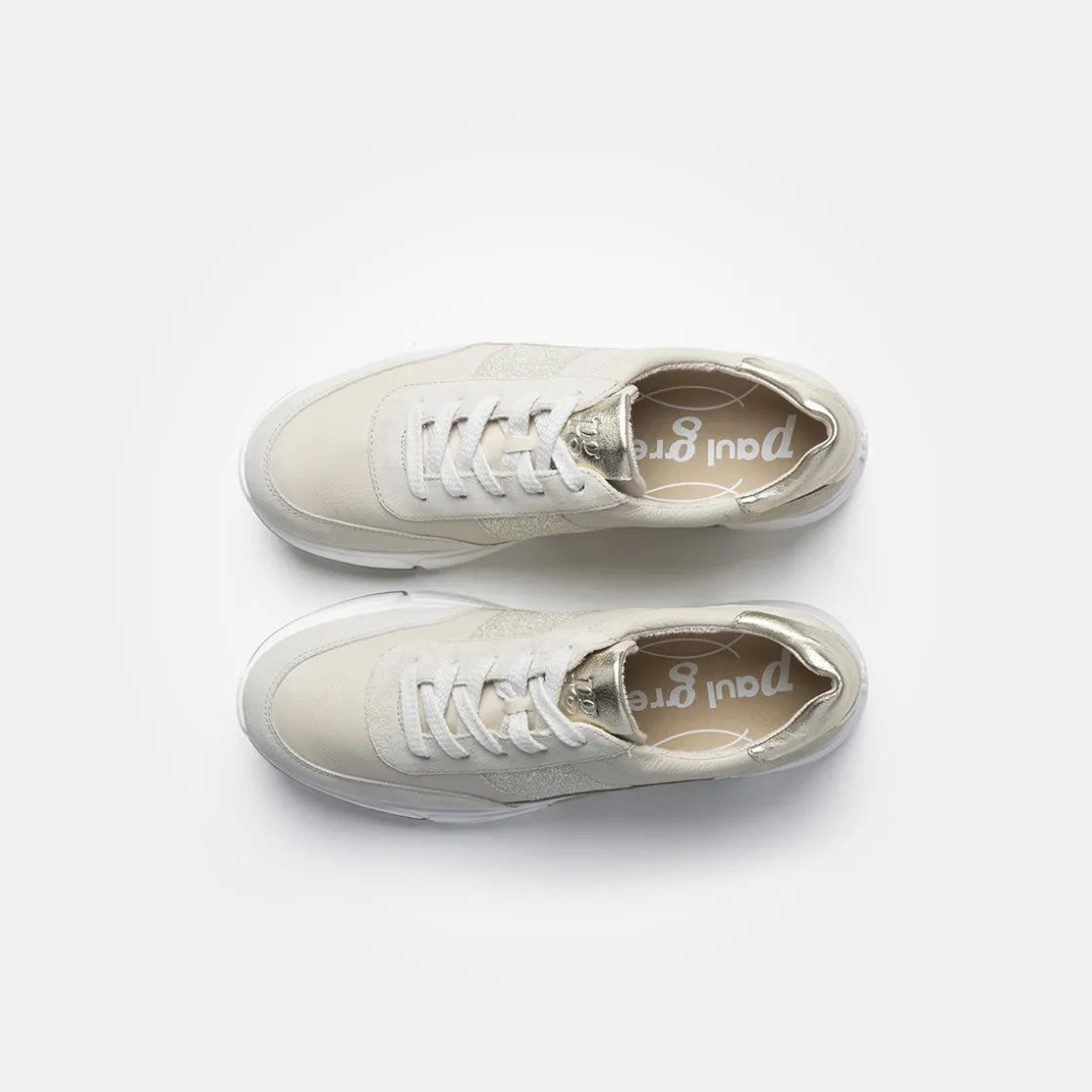 These SUPER SOFT trainers with removable footbed by Paul Green will give your everyday look a relaxed and casual style. This sporty pair in beige suede and grained leather with glitter details on the side can be stylishly combined with your favorite pieces from your casual wardrobe. The model has a removable footbed that can be replaced with an orthopaedic insole if required. An outsole with a slight platform rounds off this beautiful pair perfectly. Comfortable chic for every day! Paul Green shoes have a DNA of elegance and sportiness. This DNA can be found in every single shoe and in the entire range.